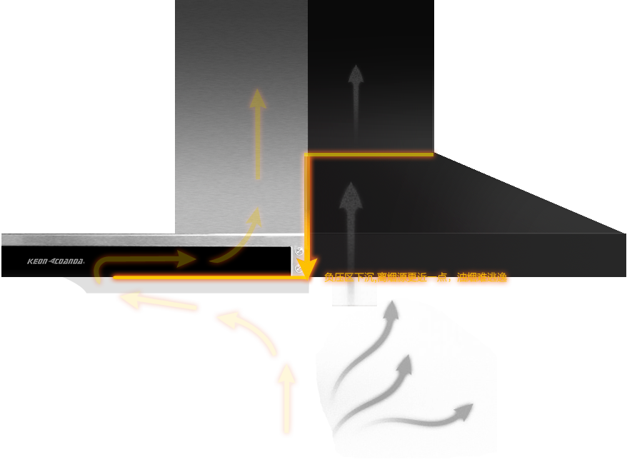 讓我們有了一個絕妙的發現,烹飪時,油煙會有炸起、升騰、擴散三個階段。而距離灶臺580mm黃金控煙區,恰好是油煙升騰和擴散的臨界點, 更是決定吸油煙效果的核心關鍵。