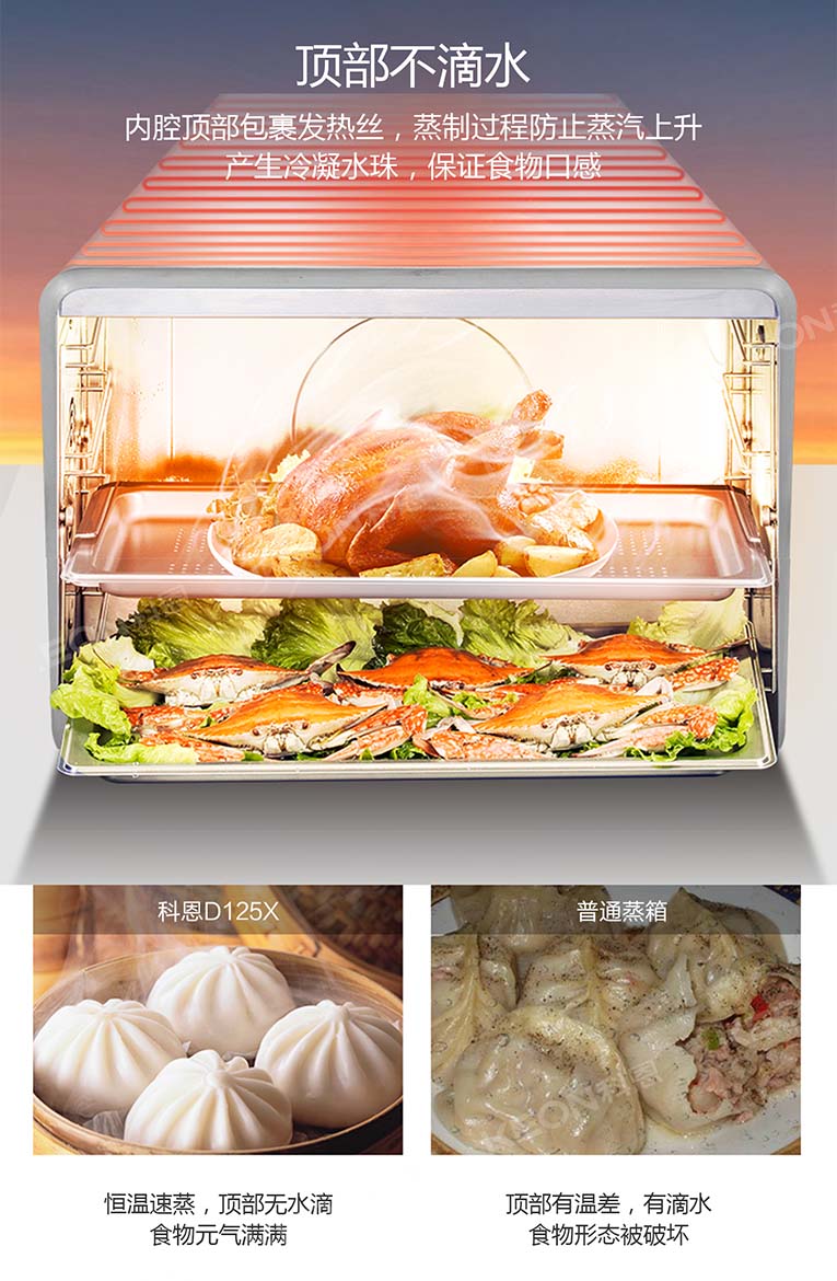 集成灶十大品牌、廚電行業(yè)十大品牌科恩集成灶內(nèi)置十大烹飪模式,溫度、火候、時(shí)間自由掌控,廚房小白輕松蒸出美味健康食物。另外,“蒸”就怕的就是有水進(jìn)入到食物里面去了,那樣的話食物就會(huì)變味,科恩集成灶就不會(huì)發(fā)生這樣的情況。4D噴氣式蒸烤,頂部也不漏水,蒸出來(lái)的食物就是原汁原味,口感更是能夠促動(dòng)你的味蕾。