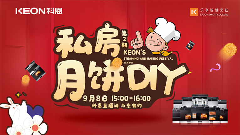 中秋在即,在這個團圓的日子里集成灶十大品牌、廚電行業十大品牌科恩蒸烤節 • 私房月餅DIY,零距離感受科恩集成灶最大魅力。科恩蒸烤節 • 私房月餅DIY第Ⅱ期將于9月8日15:00在科恩直播間/科恩京東直播間同步開啟,喚醒味蕾,領略科恩中秋特色文化,與家人一同情暖中秋!