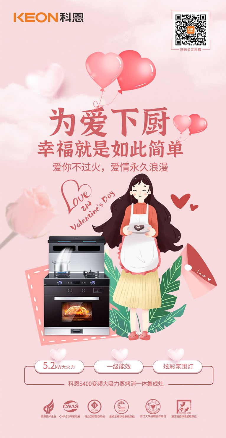 情人節 | 我能想到最浪漫的事,就是用科恩集成灶和你一起做美食