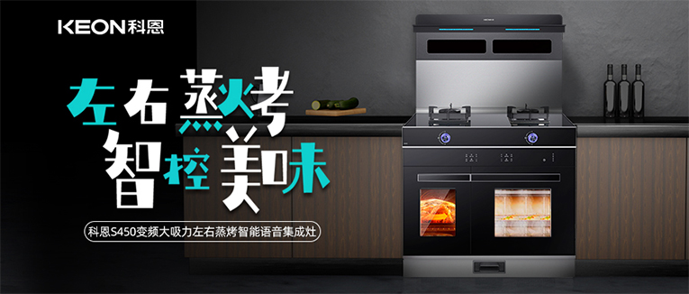 科恩變頻大吸力左右蒸烤集成灶集成了多種功能,除擁有大吸力外,蒸烤功能更是滿足消費者多樣化的烹飪需求,左右獨立控制,蒸烤同時進行,多種烹飪模式輕松選擇。