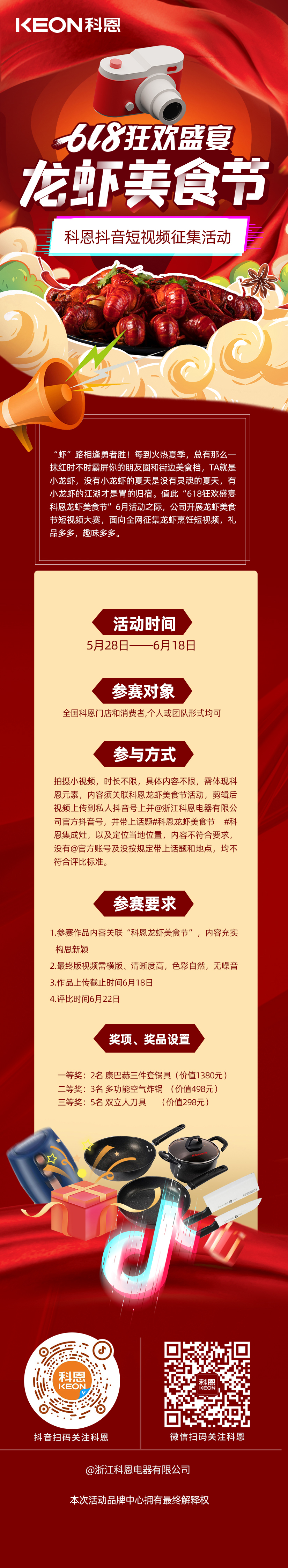 科恩「龍蝦美食節」抖音短視頻征集活動開始啦!