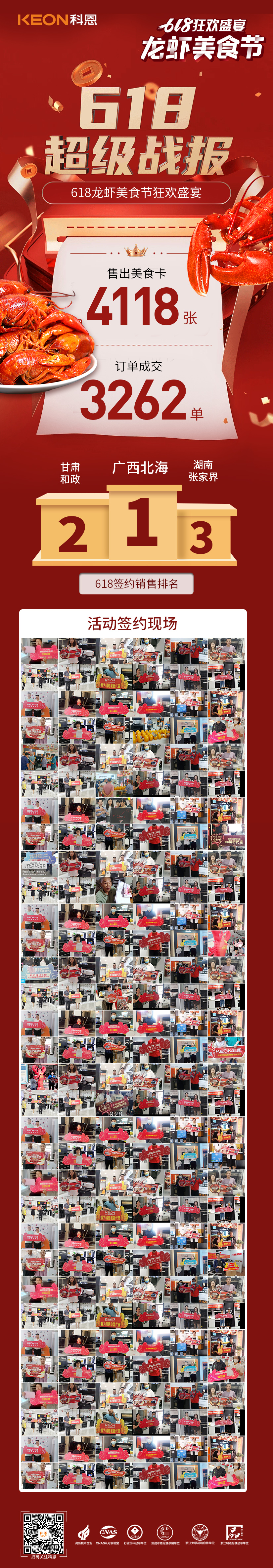 辛勤耕耘結碩果,砥礪前行贏未來,通過本次龍蝦美食節的雙線聯動,總部統一指揮策劃助力,雙線融合多點爆破,不僅提升了經銷商在當地的市場占有率和銷售量,同時更導入全新沉浸式營銷模式,突出了科恩電器在廚電領域的強勁實力和品牌效應,618活動的完美收官,更離不開奮戰在一線的全國科恩經銷商家人的全力支持和辛苦付出,未來,讓我們一路同行,全程幫扶,攜手共勉,期待下一次活動更加輝煌!