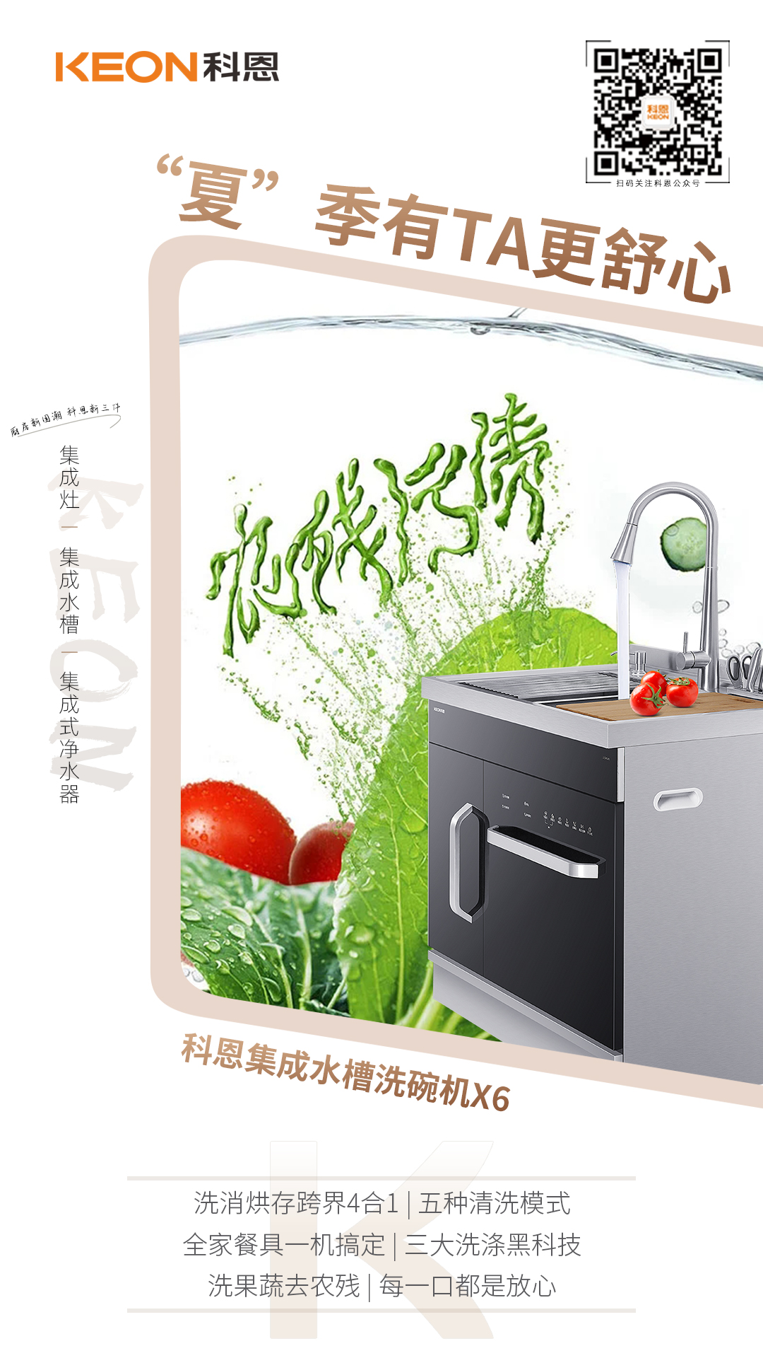 阻止我廚藝增長的主要原因,大概是夏季炎熱的廚房和四季不想洗碗的手,如今“夏”廚有了科恩S400蒸烤一體集成灶,再加上科恩集成水槽洗碗機(jī)X6的坐鎮(zhèn),連廚房都變得有趣了起來!跨界4合1洗消烘存,把刀架、900mm寬體多功能超大水槽、洗碗機(jī)、儲(chǔ)物柜等集成一體,空間更優(yōu)化,5大清洗模式、多種洗滌場景一機(jī)搞定,雙層靈活碗籃輕松滿足五口之家十套餐具清洗存儲(chǔ),湯鍋、炒鍋等大件廚具也能輕松洗滌;更有特制潔凈果蔬洗功能,可清洗葡萄、青菜等果蔬,高效去農(nóng)殘,還可清洗生蠔、螃蟹等復(fù)雜海鮮!如此配置的廚房,不僅給生活增添了無限情趣,就算來再多客人都不帶怕的!