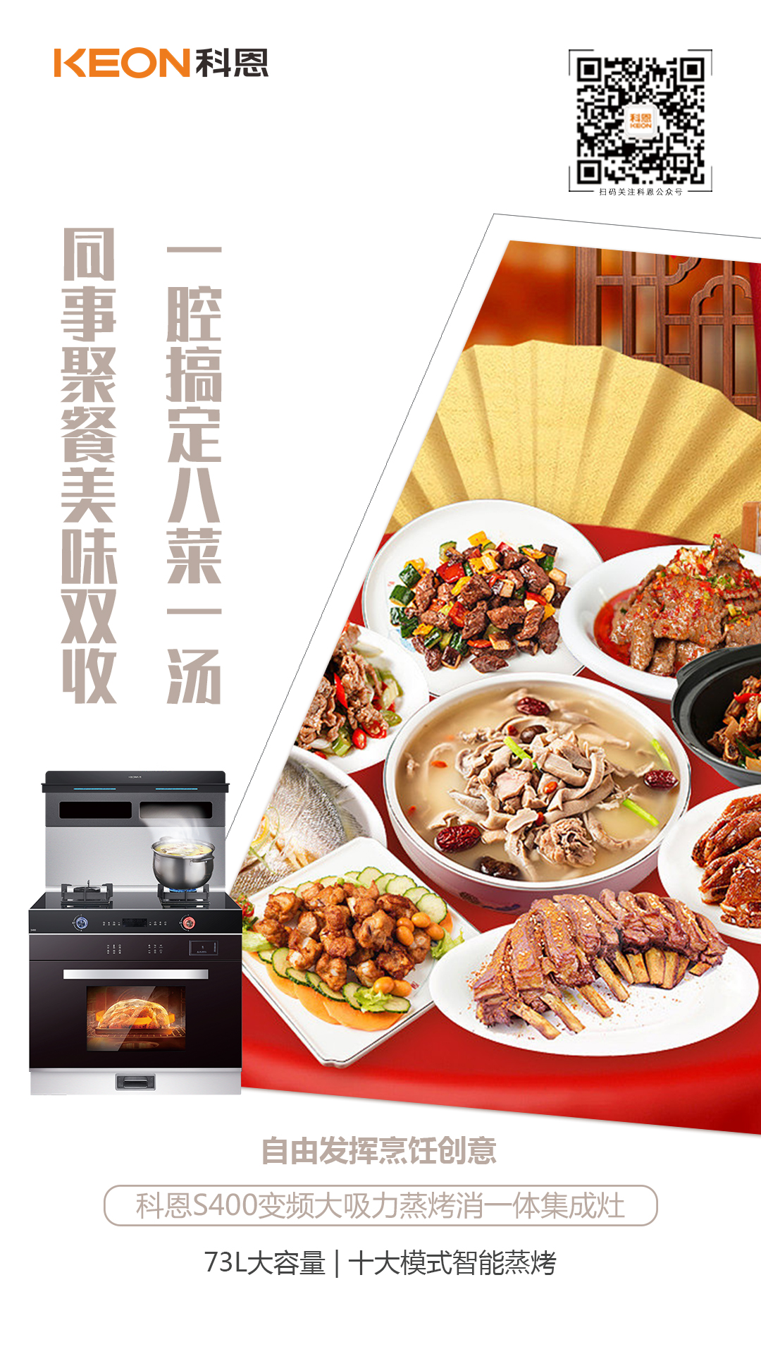 驅(qū)散夏日炎熱,讓夏天愛上下廚房,用科恩S400變頻大吸力蒸烤消一體集成灶,文蒸武烤,美味即刻上桌!