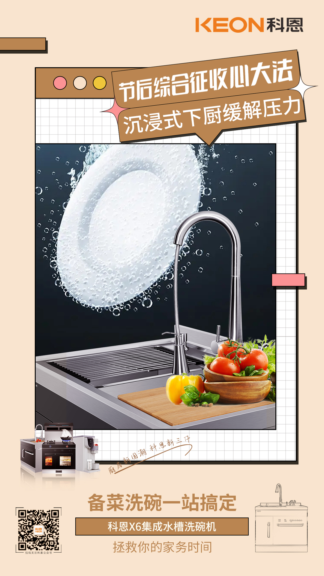 很多時候,我們不得不承認,總是空有一副熱愛烹飪的靈魂,卻總囿于打掃“戰(zhàn)場”的困境,只想用一頓親手制作的美食犒勞一下辛苦的自己,卻總是被飯后的鍋碗瓢盆給勸退,科恩X6集成水槽洗碗機,摒棄多余操作動線,平米之間備菜洗碗一站搞定,潔凈果蔬洗,有效去農(nóng)殘,超聲波清洗,讓小龍洗清洗液成為一件無比輕松的事情,洗消烘存四合一,五大清洗模式,三大洗滌黑科技,拯救你的家務時間,讓你從此只享受沉浸式下廚的無限樂趣,剩下的就放心交給科恩X6集成水槽洗碗機!