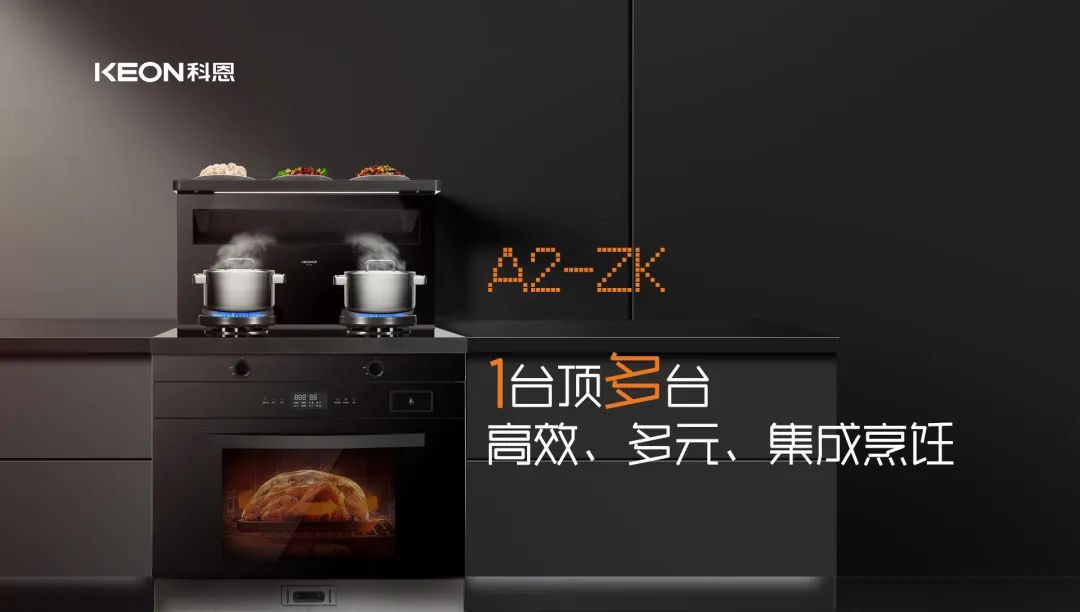 科恩A2蒸烤一體集成灶,集油煙機、燃氣灶、電蒸箱、電烤箱、解凍機、發(fā)酵機、烘干機、保溫箱,8臺一體。一平方就籠絡(luò)了整個廚房電器,大幅度節(jié)省了廚房空間,小廚房也能有大作為。