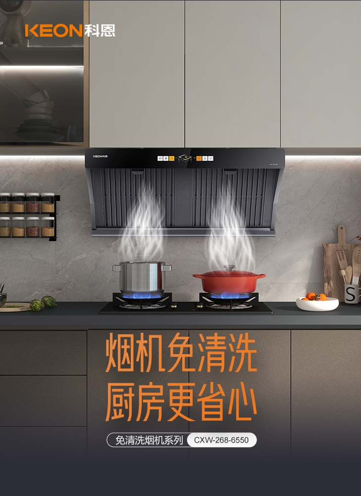 科恩6530免清洗煙機(jī)的面世,給無(wú)數(shù)用戶帶去了全新的廚房生活理念。不用清洗的油煙機(jī),讓人們真正體驗(yàn)到了便利的廚房生活。也因此6530可謂是火爆全網(wǎng),暢銷(xiāo)全國(guó)!科恩隨即研發(fā)了6530姊妹款6550!