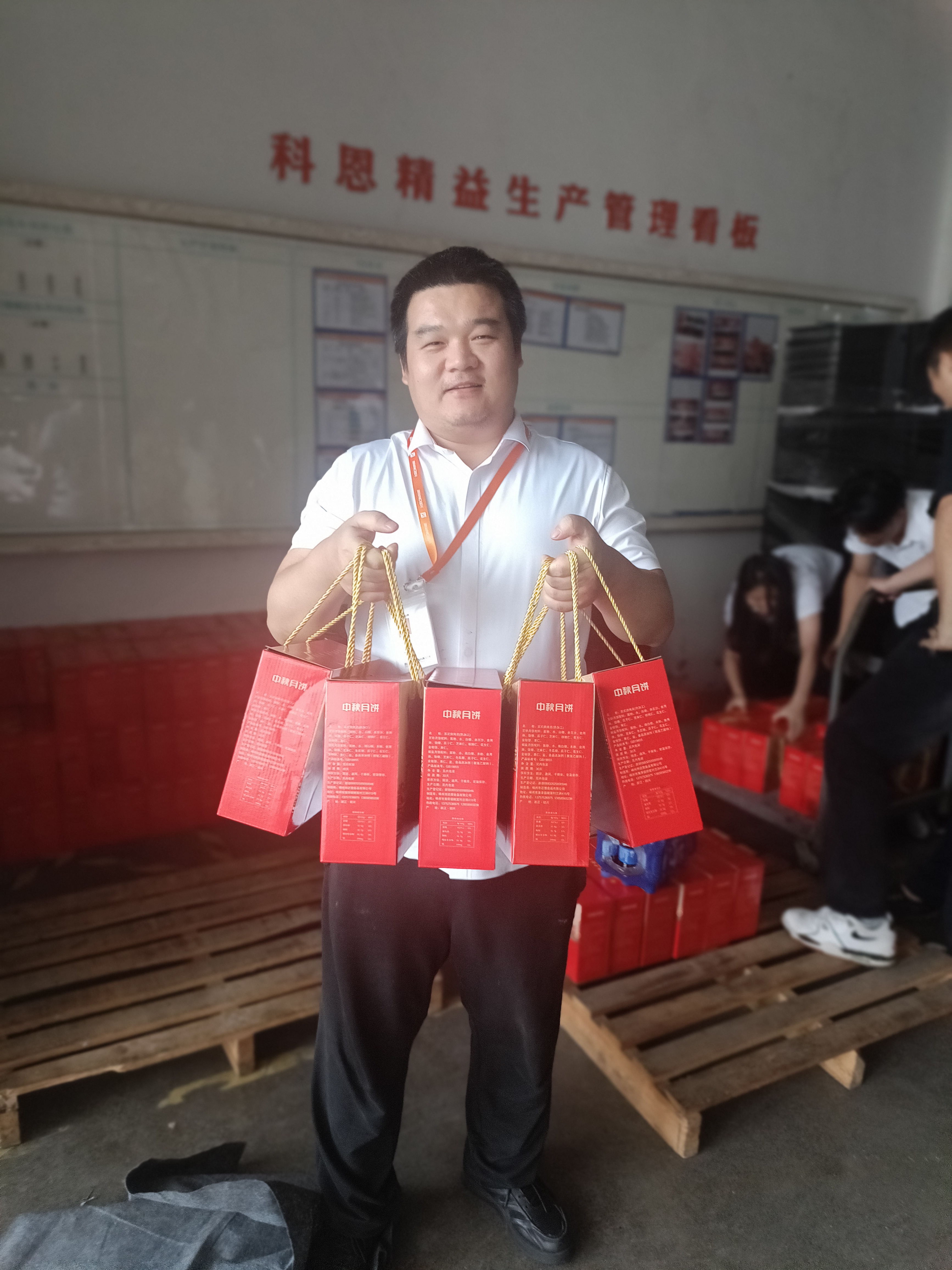 中秋福利分發(fā)現(xiàn)場(chǎng),紅紅火火的禮包映著喜氣洋洋的笑臉。處處是科恩人的歡聲笑語(yǔ),一張張燦爛的笑容,傳遞著喜悅之情。