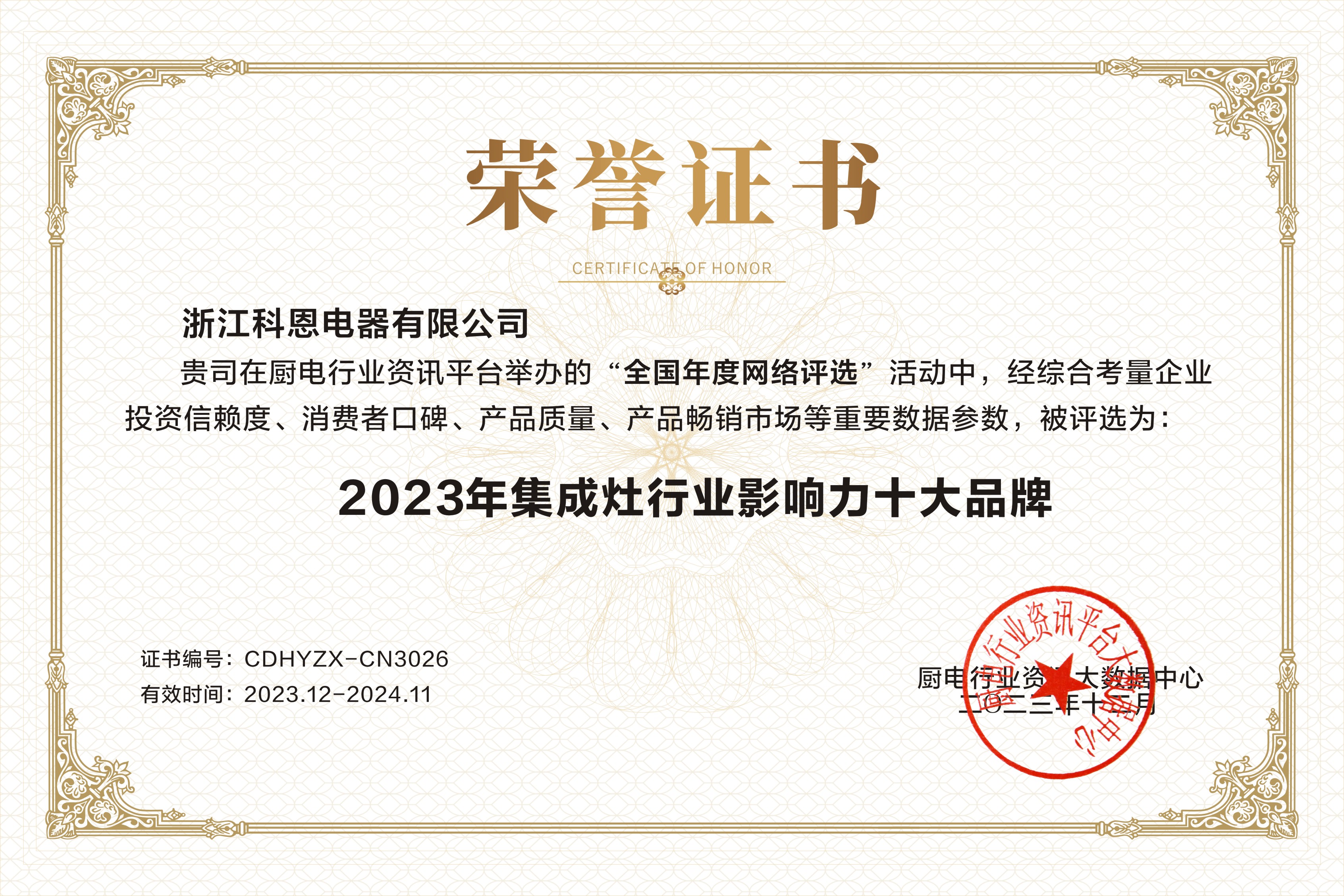 匠心“灶”就精品,品質(zhì)見證實力!2023年,浙江科恩電器有限公司再次憑借實力連獲3獎!