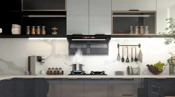 G500防爆免清洗集成灶一臺(tái)就集合了:煙機(jī)、灶具、蒸箱、烤箱、空氣炸鍋、電燉鍋等。