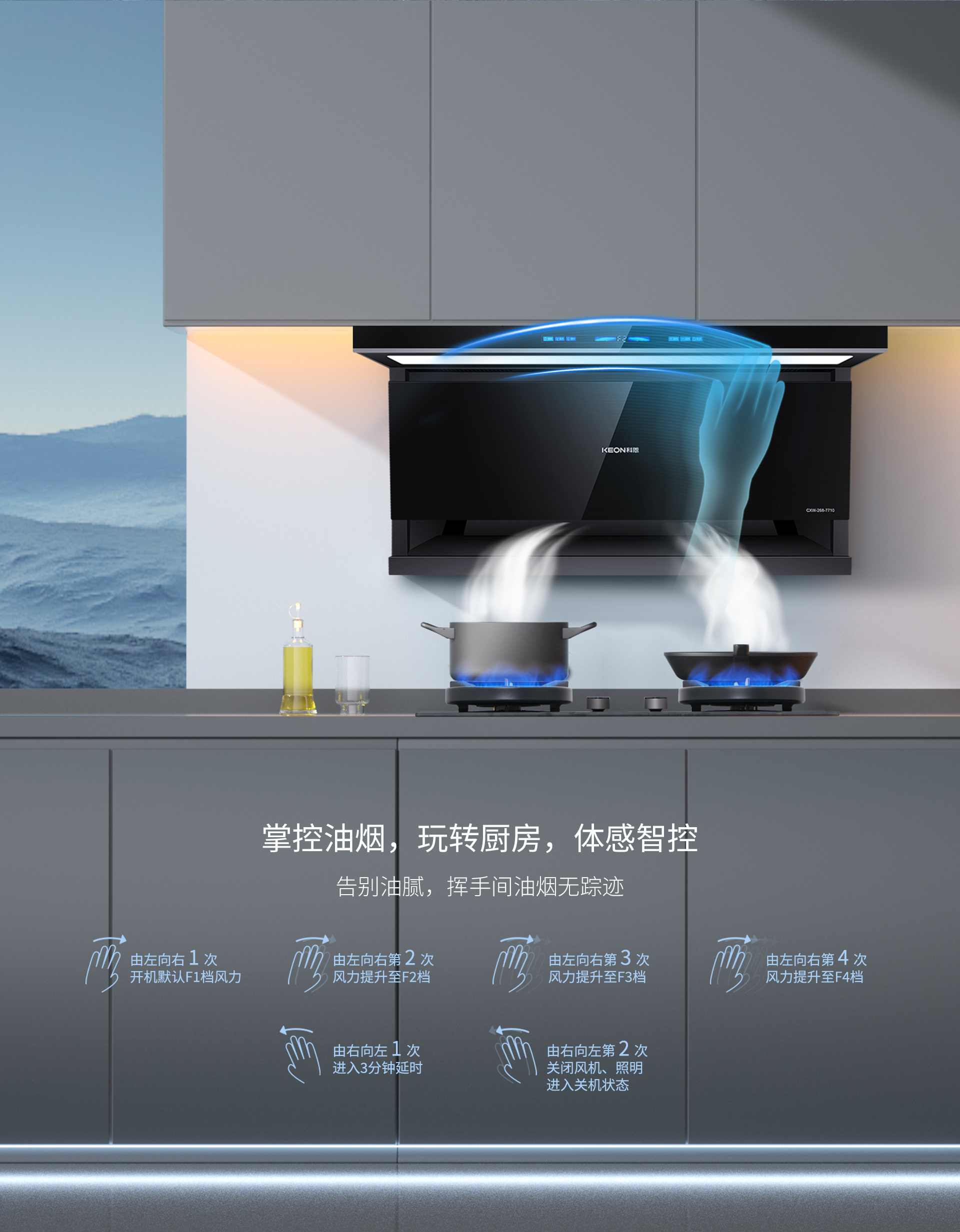 是時候展現真正的高品煙機了!科恩仰望系列7710智能聯動油煙機,開啟高品廚房生活!