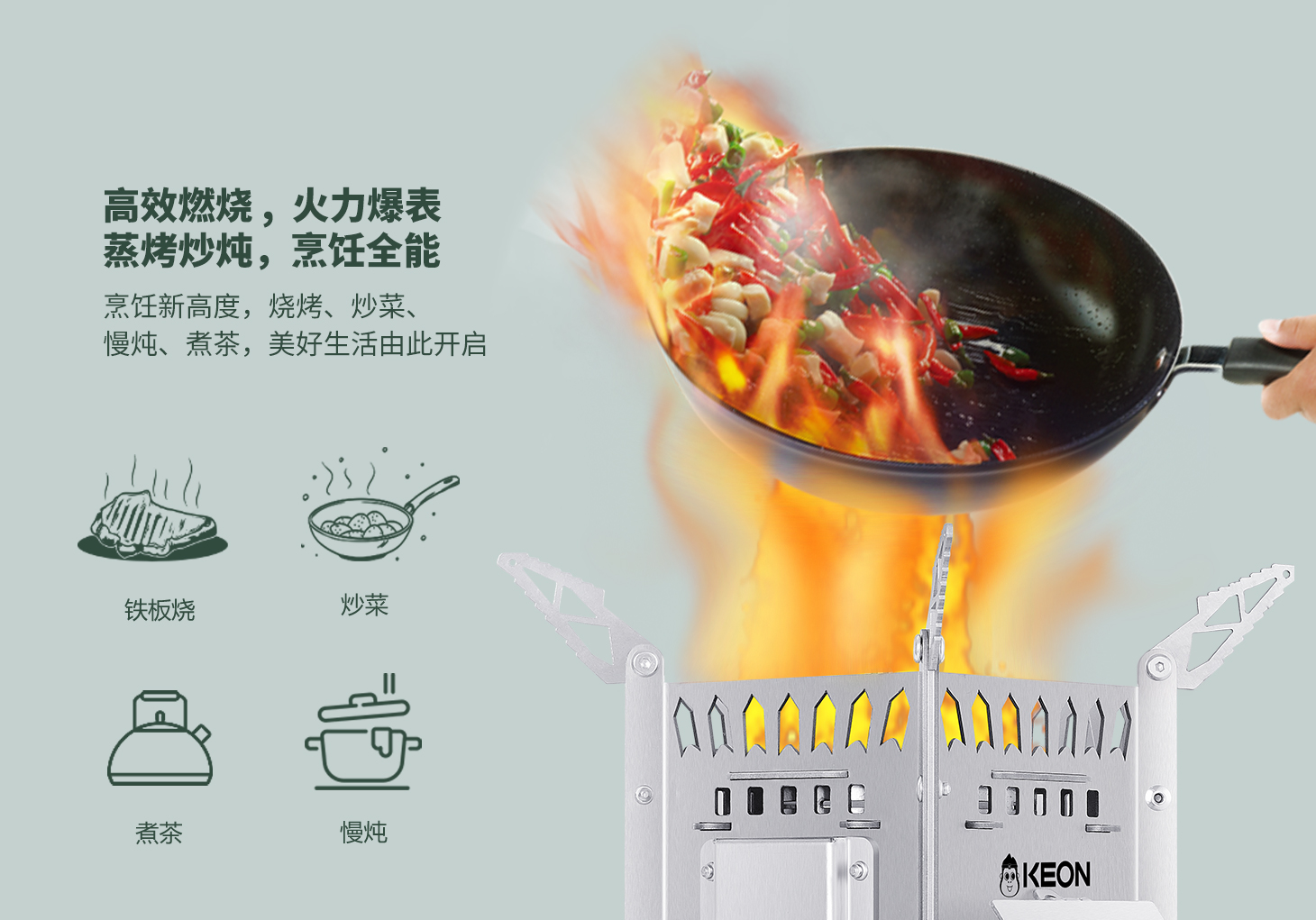 傳統爐灶的嗆鼻濃煙模糊了山色,科恩提供全新解決方案,火箭爐S12設置3D繞流供氧系統。科學供養,猛火無煙,可調支撐腳,穩立碎石坡地。熱效率超傳統爐具250%,省柴省心更省空間,從野餐到探險全覆蓋。