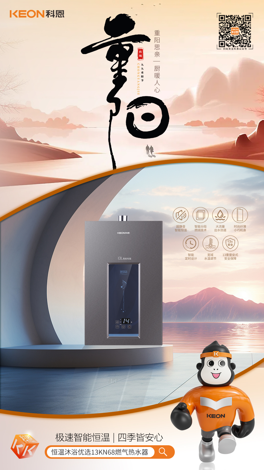 重陽又至,秋意漸濃。登高祈福,賞菊飲酒孝心綿長,廚房煙火,承載三代溫情。一套省心廚電,讓團圓滋味更圓滿,把對長輩的愛,藏進每一頓餐食里。科恩廚電助你打造一個舒適、便捷、安全的廚房環境,讓孝心在廚房中綻放。