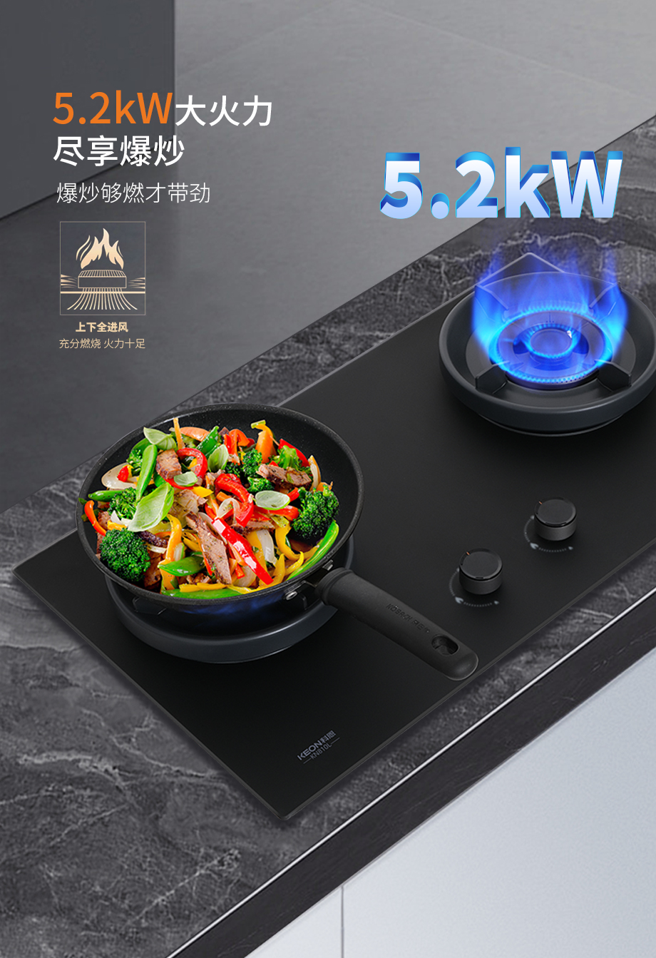 火力隨心,拿捏中式烹飪。5.2kW大火力鎖牢食材鮮香,170°寬域調(diào)火,慢燉蒸煮各得其所,環(huán)抱式聚能環(huán)防風(fēng)聚熱,火力全開(kāi)從容掌控各式烹飪。68% 一級(jí)熱效率,節(jié)能省氣不心疼。