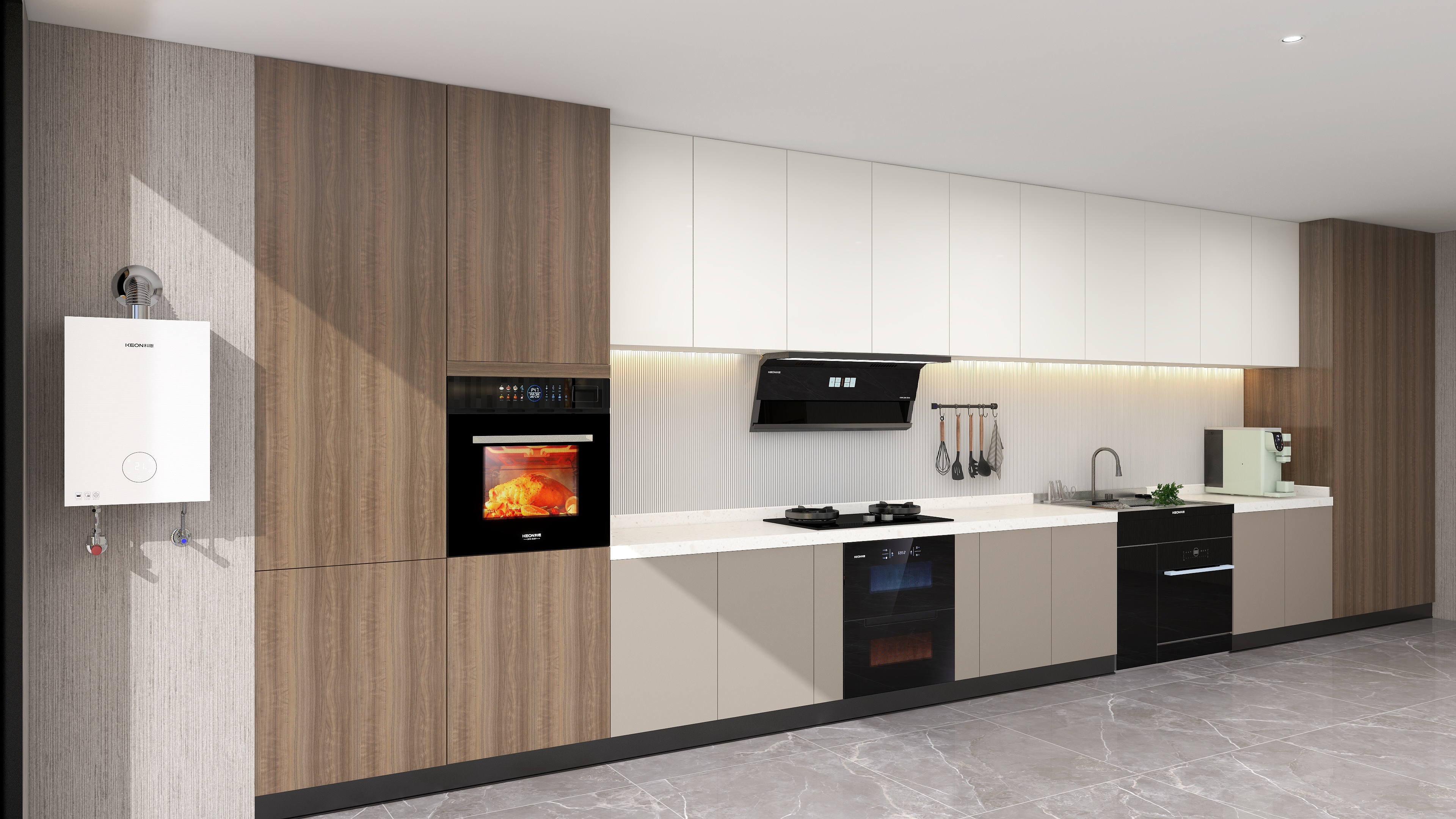輕薄高顏,廚房煥新。2.5cm纖薄機身,空間不擁擠,冰川灰鑲邊,氣質獨一檔,120° 天鵝頸設計,視野開闊,IP67級大燈,照明無死角,科恩7810煙機,烹飪更舒心。