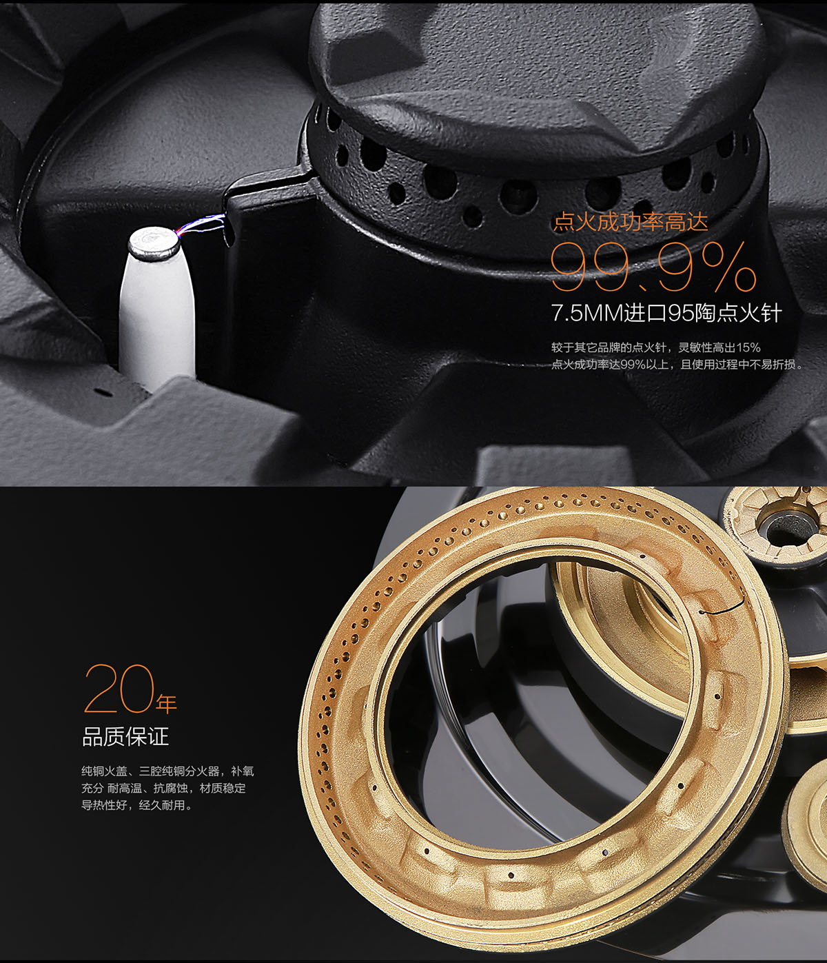 • 耐高溫上下全銅火蓋。