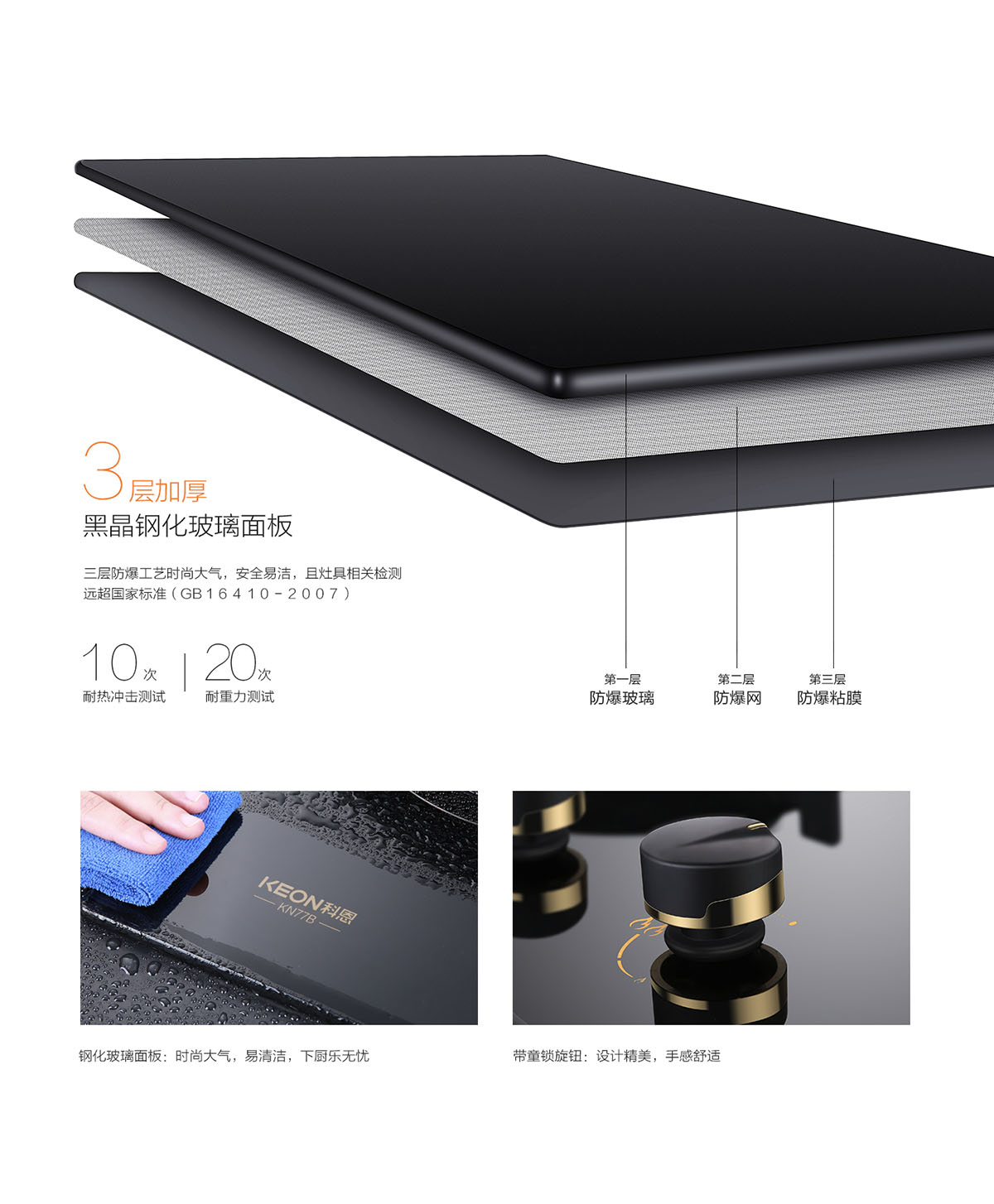 • 黑晶防爆鋼化玻璃面板。