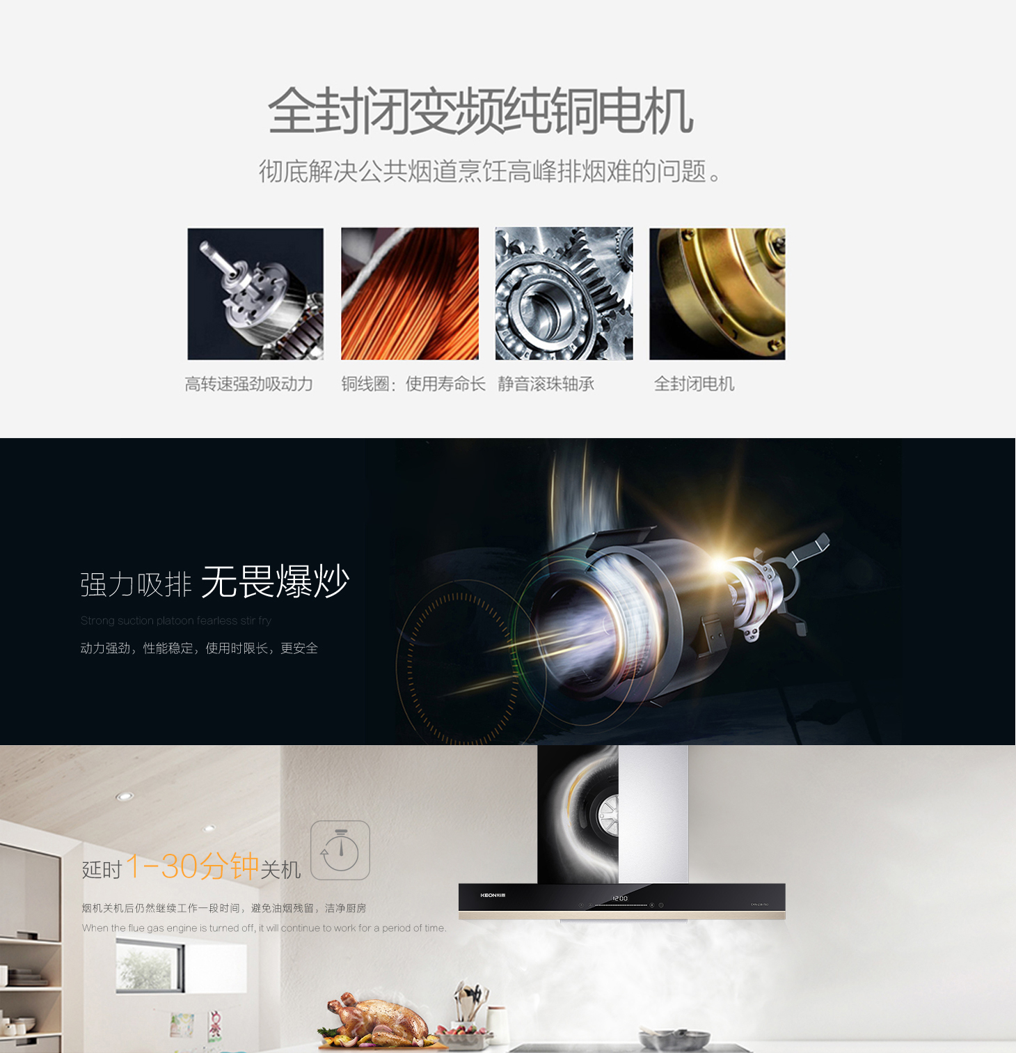 三防封閉式純銅電機,使用壽命長,更讓廚房遠離嘈雜。