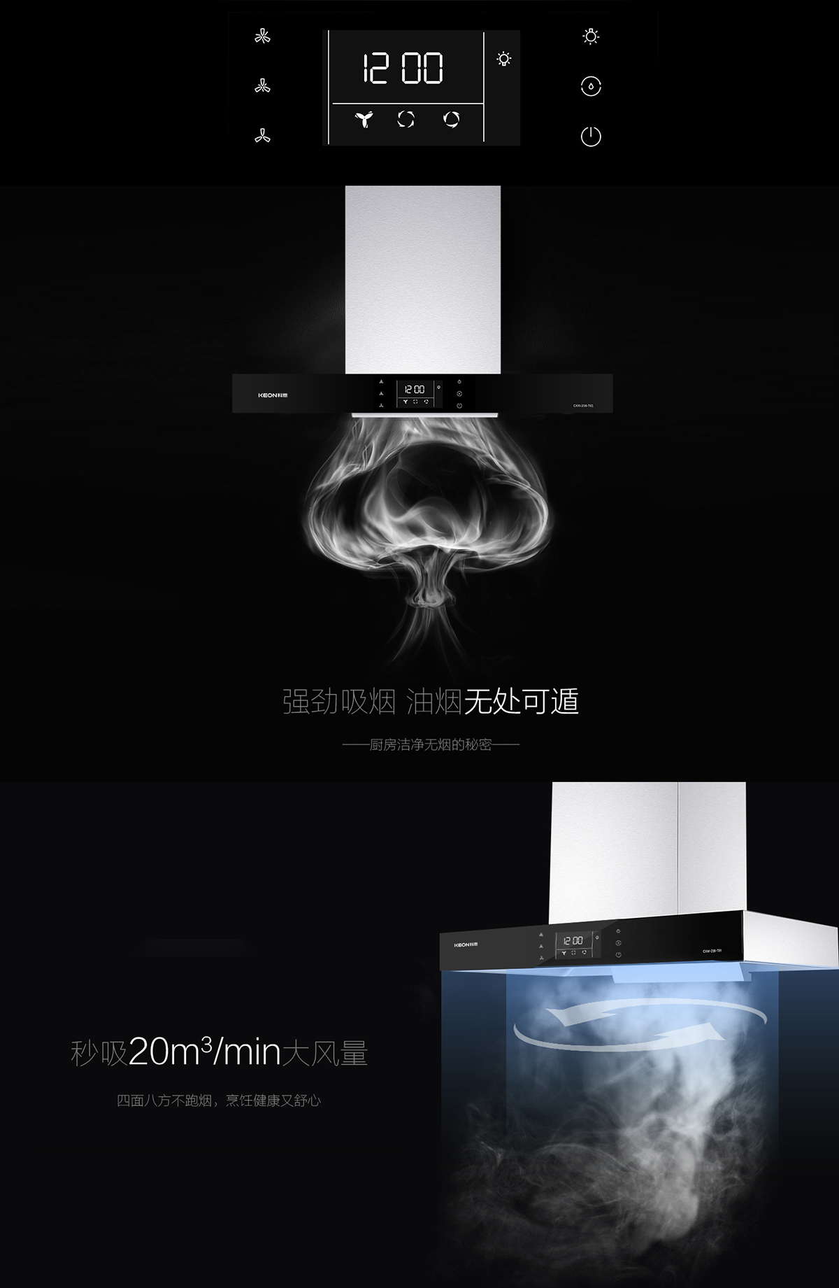 - 增加70mm活動(dòng)空間,秒吸油煙不碰頭。