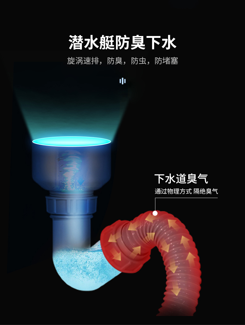ABS防臭下水器套裝設計,大直徑下水管