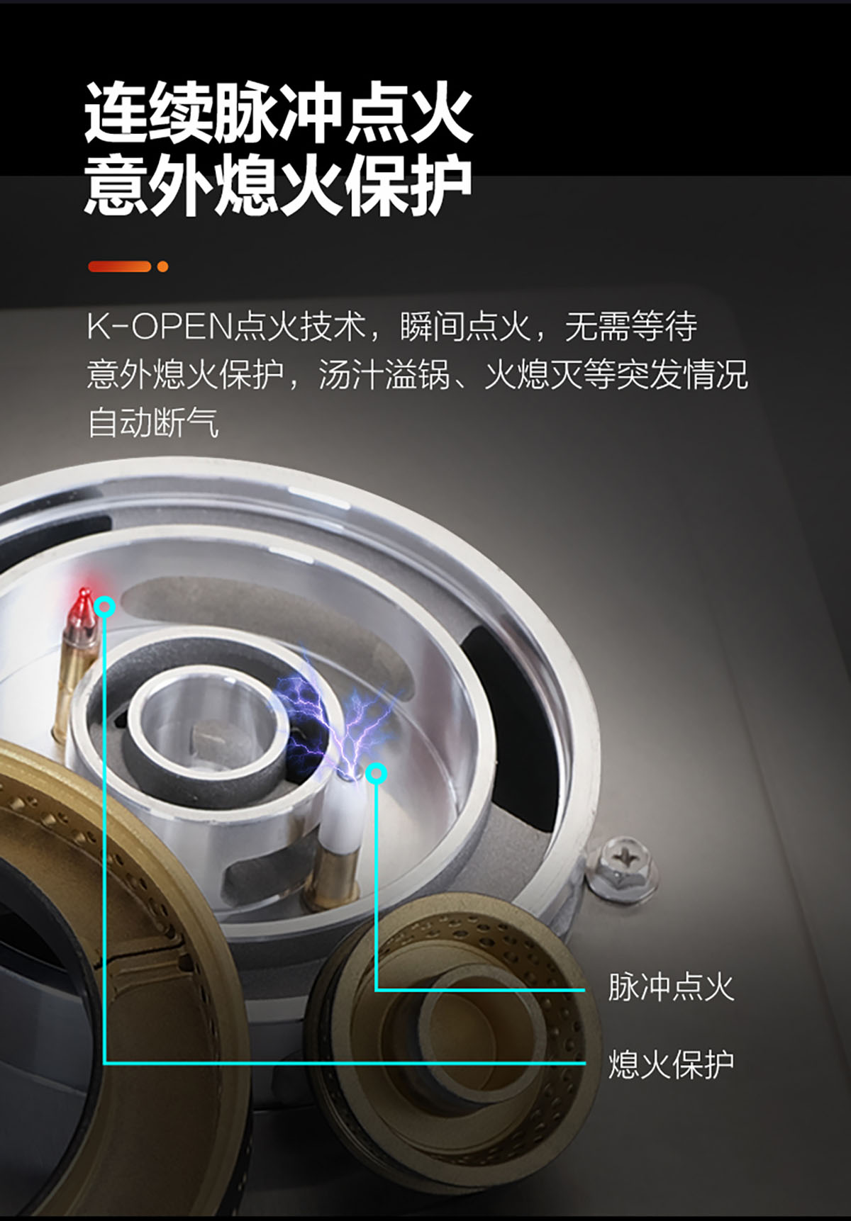 • 意外熄 火保護,連續脈沖點火