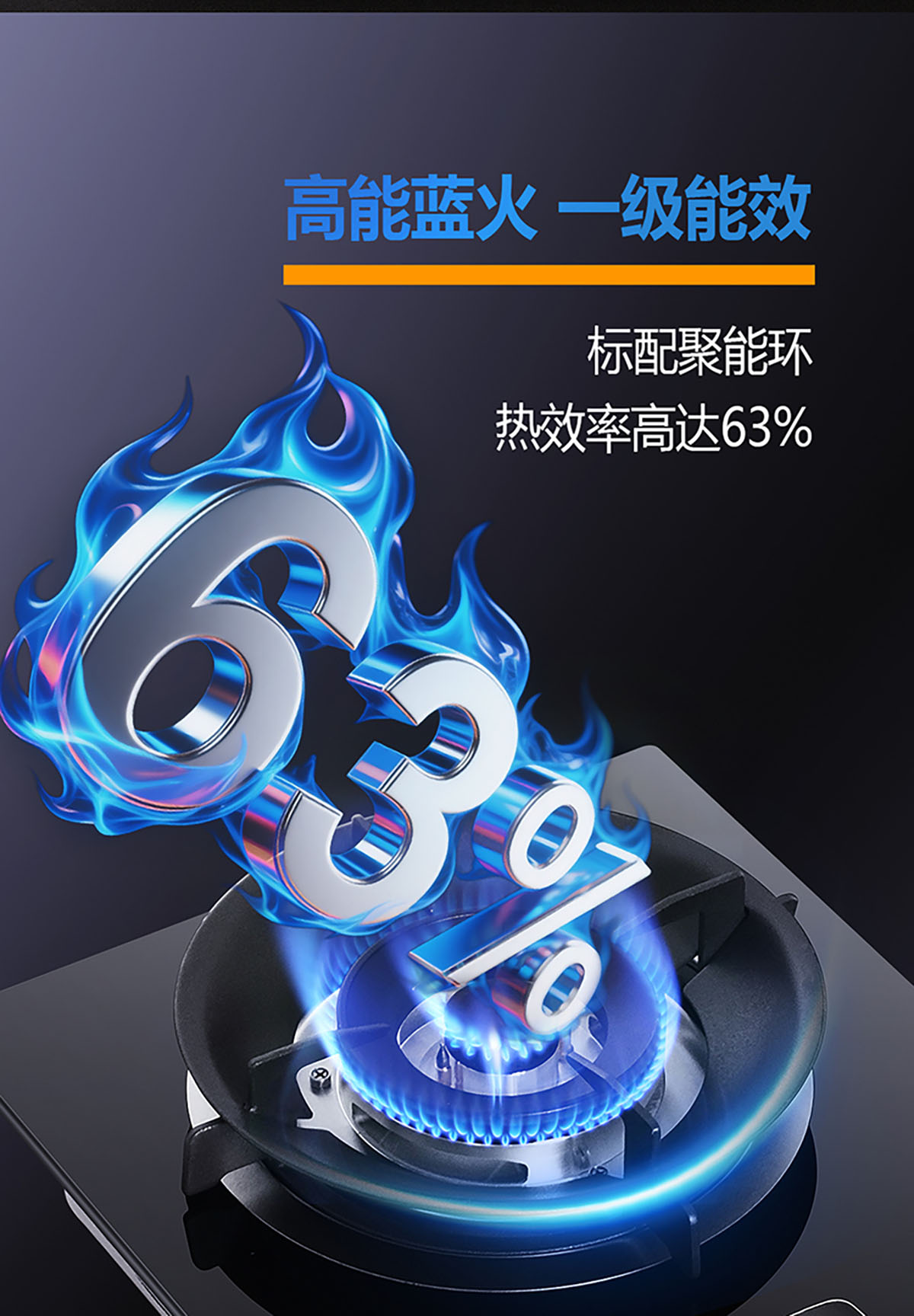 達克羅防腐防銹爐頭,純銅火蓋,熱效率達63%。