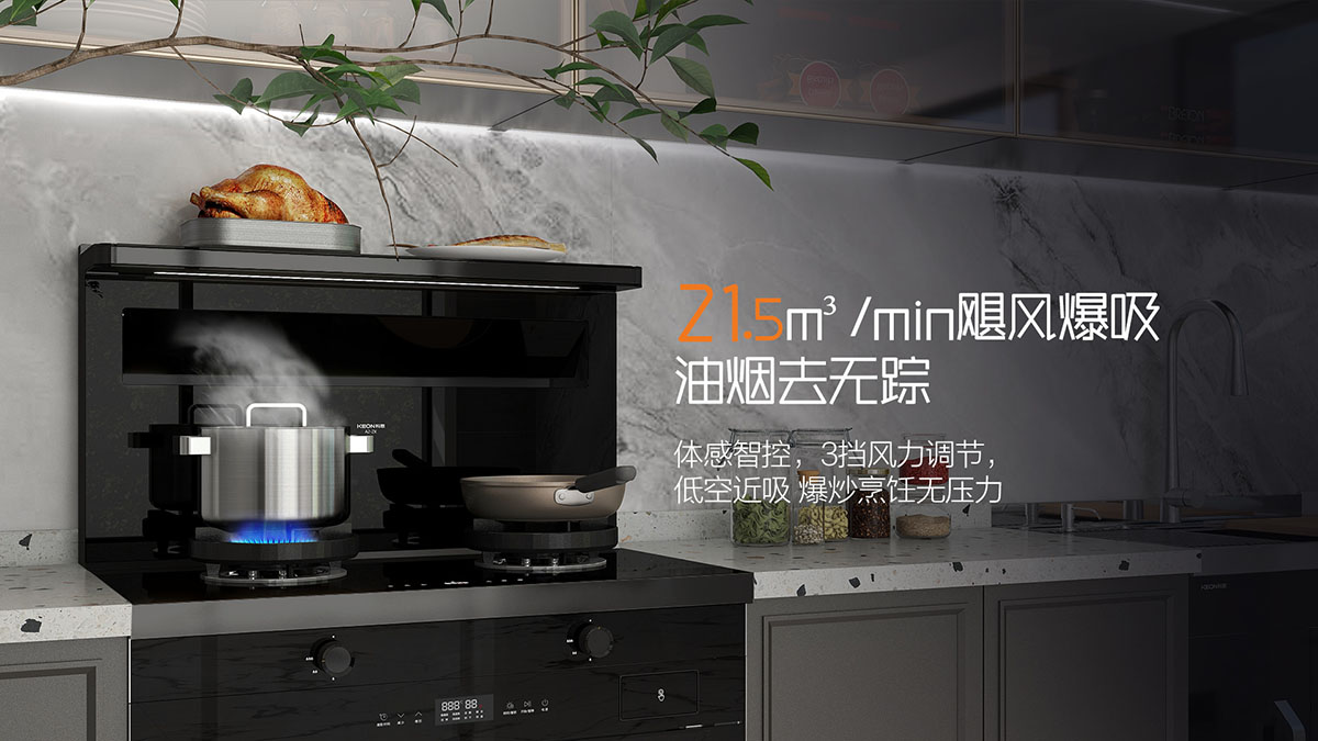 21.5m3/min寬域爆吸攏煙,油煙0逃逸