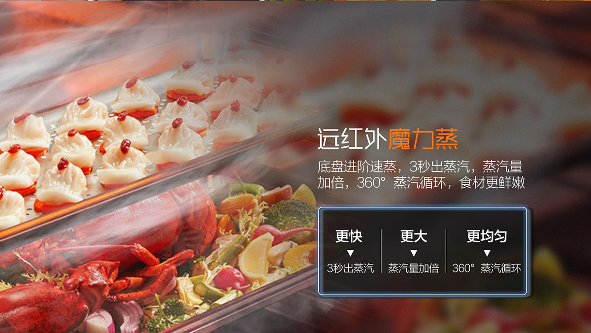 大容量蒸烤箱,120℃高溫快蒸,360〫立體炙烤