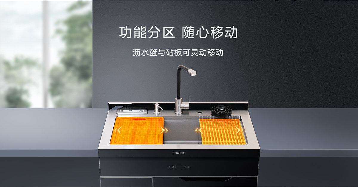 瀝水籃與砧板可靈動移動,功能分區,隨心移動