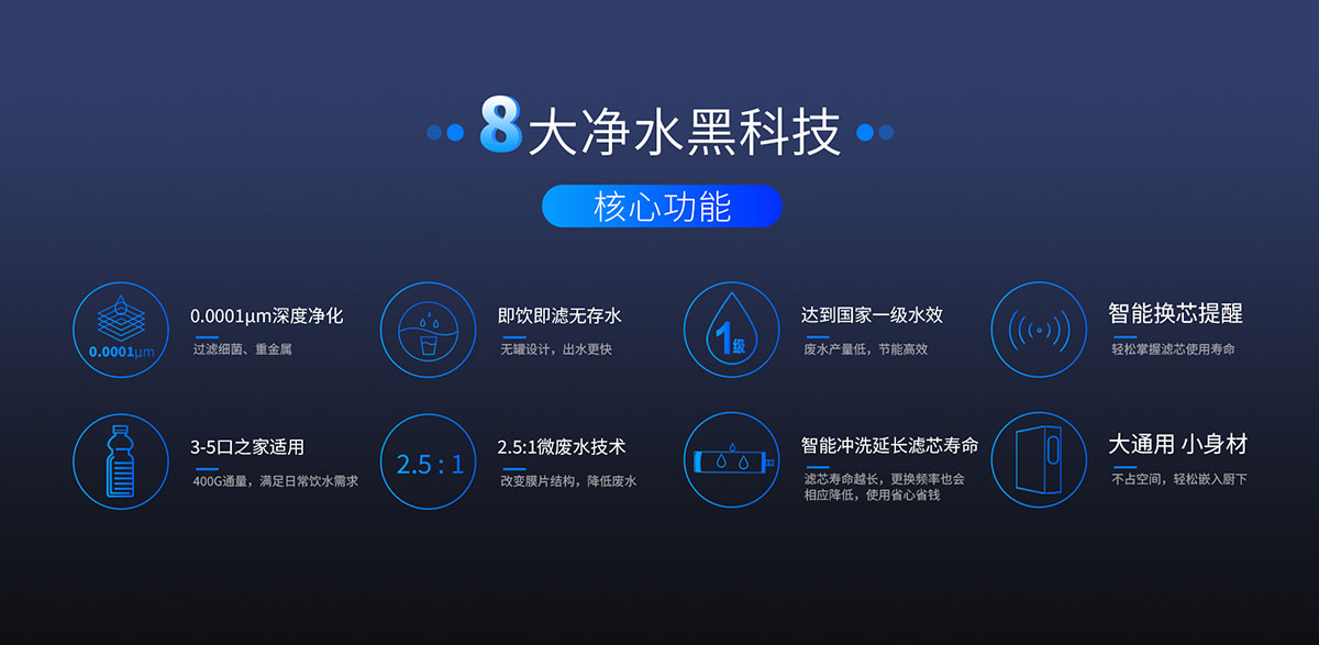 - RO膜長效續航,高精度反滲透,強凈耐用