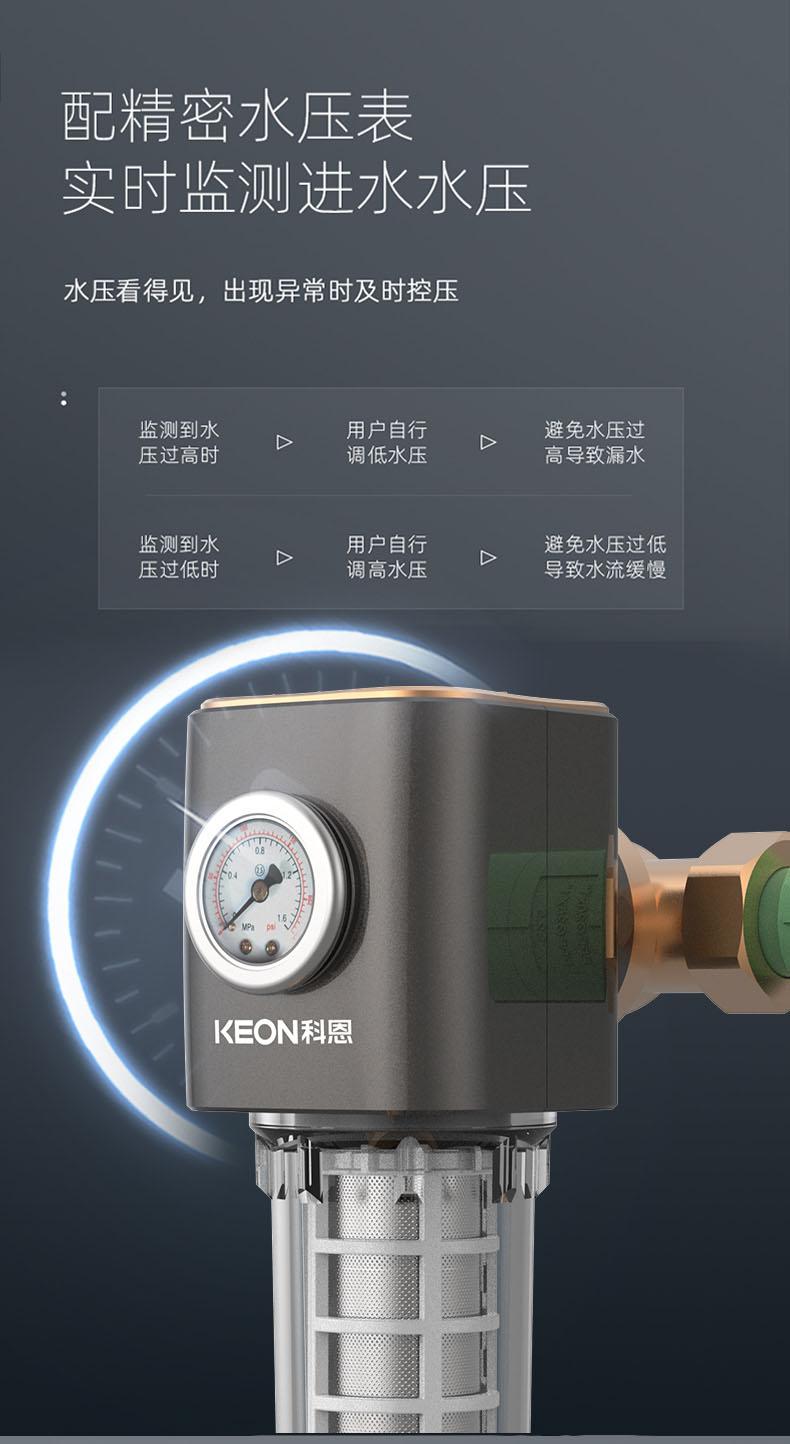 - 配精密水壓表,實(shí)時(shí)檢測進(jìn)水水壓