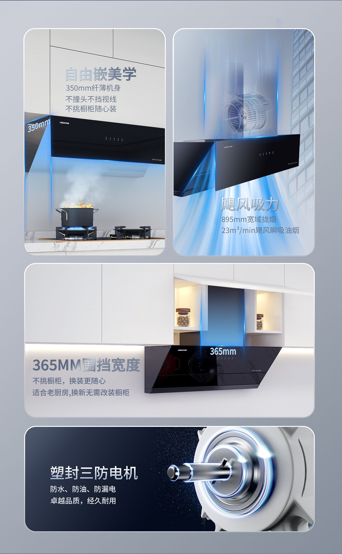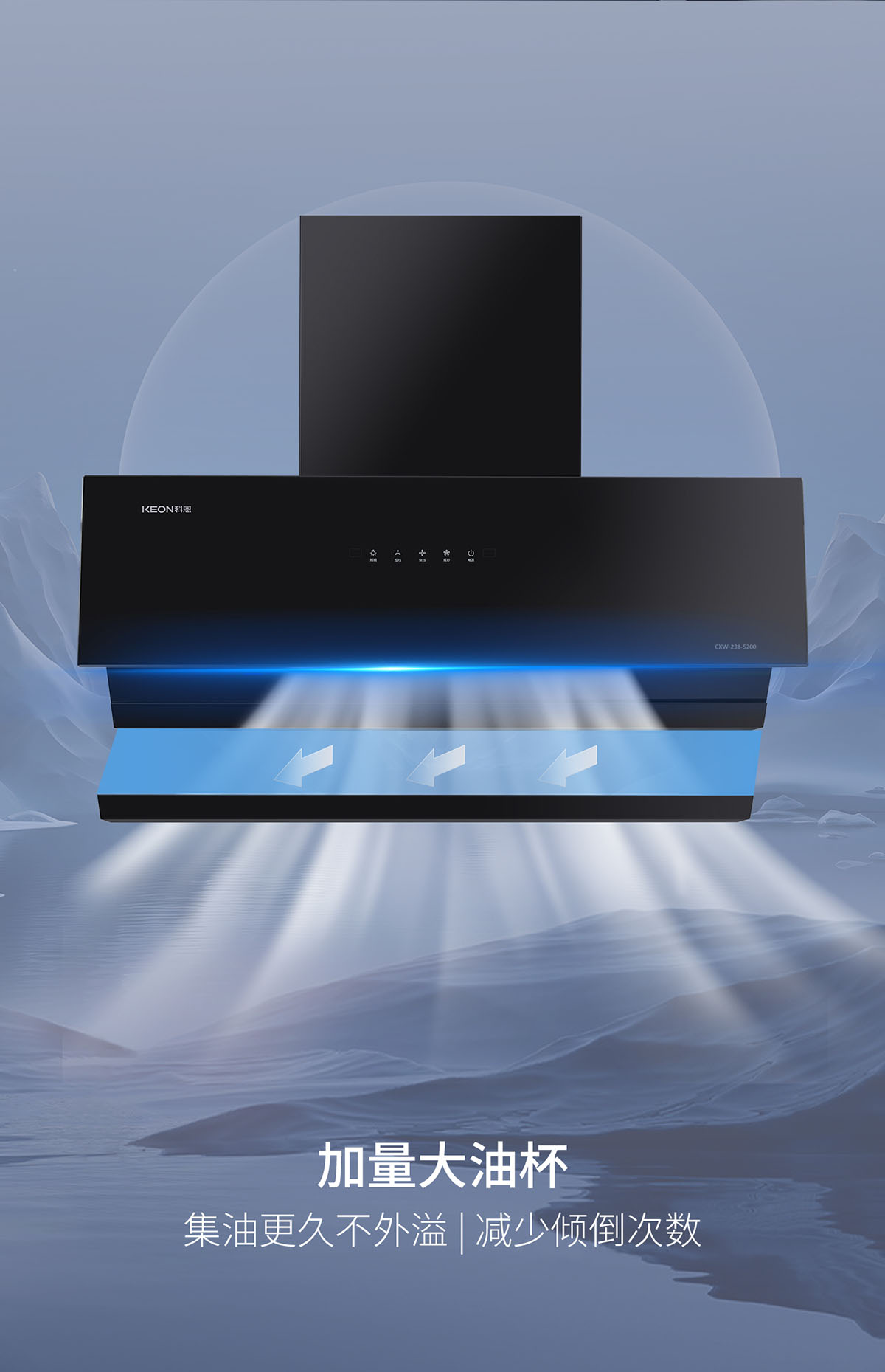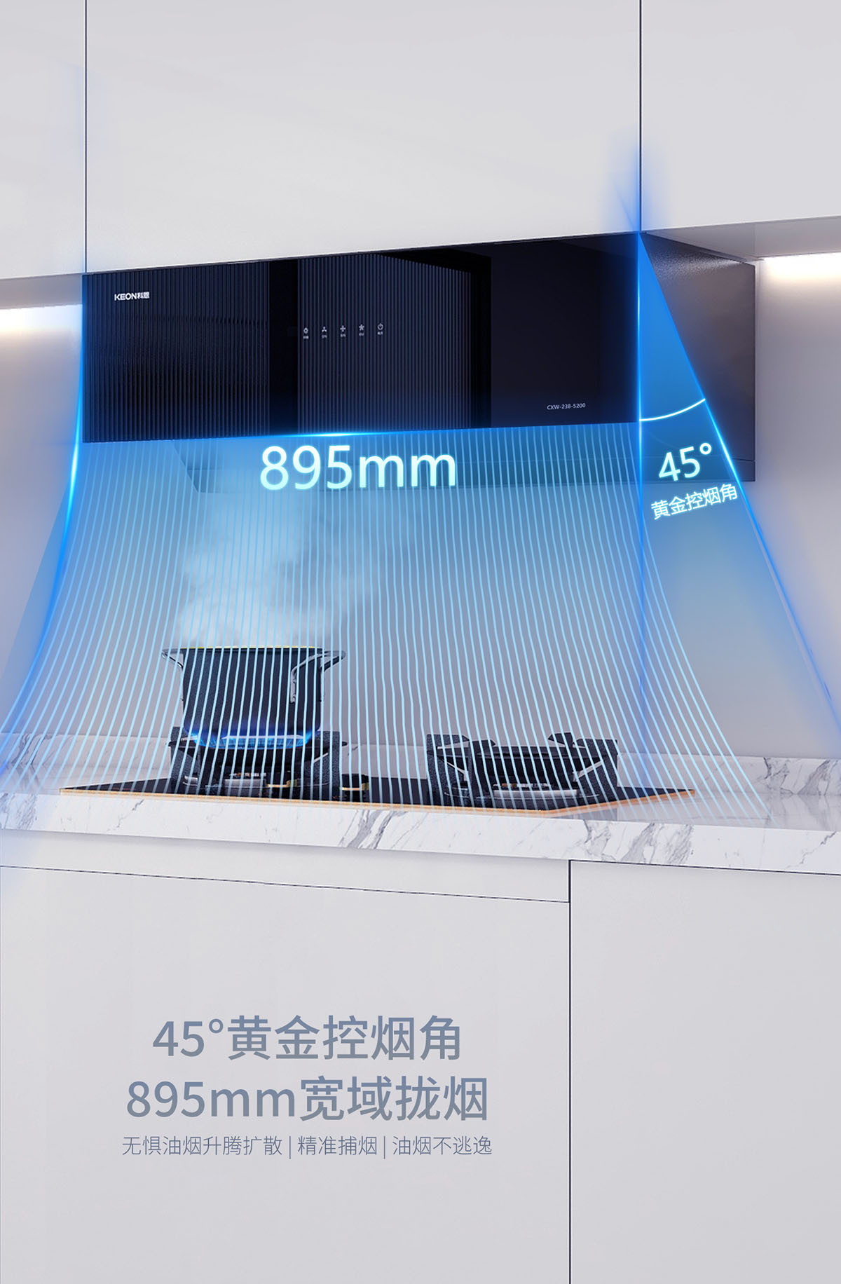 • 23m³/min颶風吸力,瞬吸油煙,打造無煙廚房