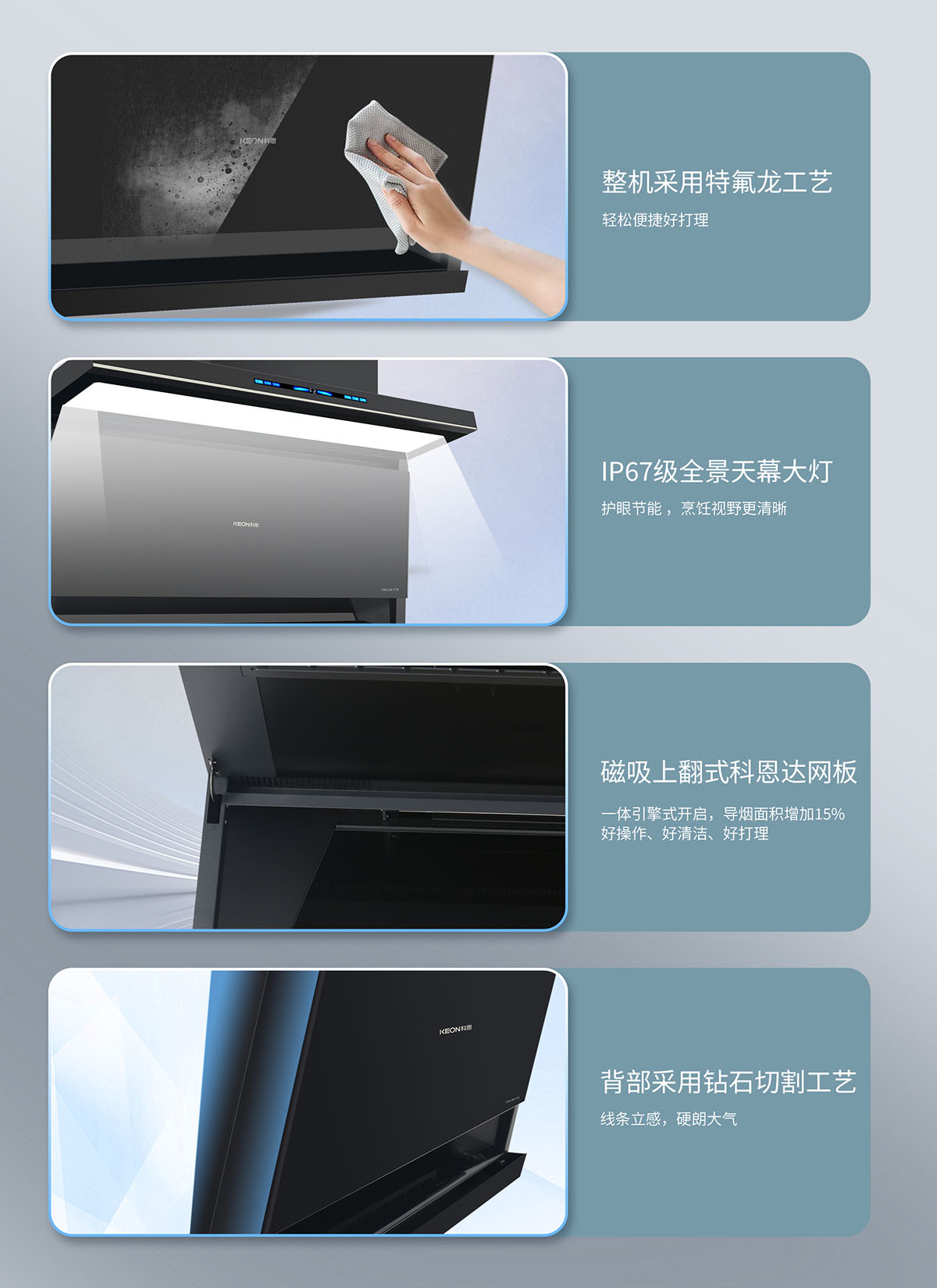 - 體感智控,揮手間油煙無蹤,杜絕油膩