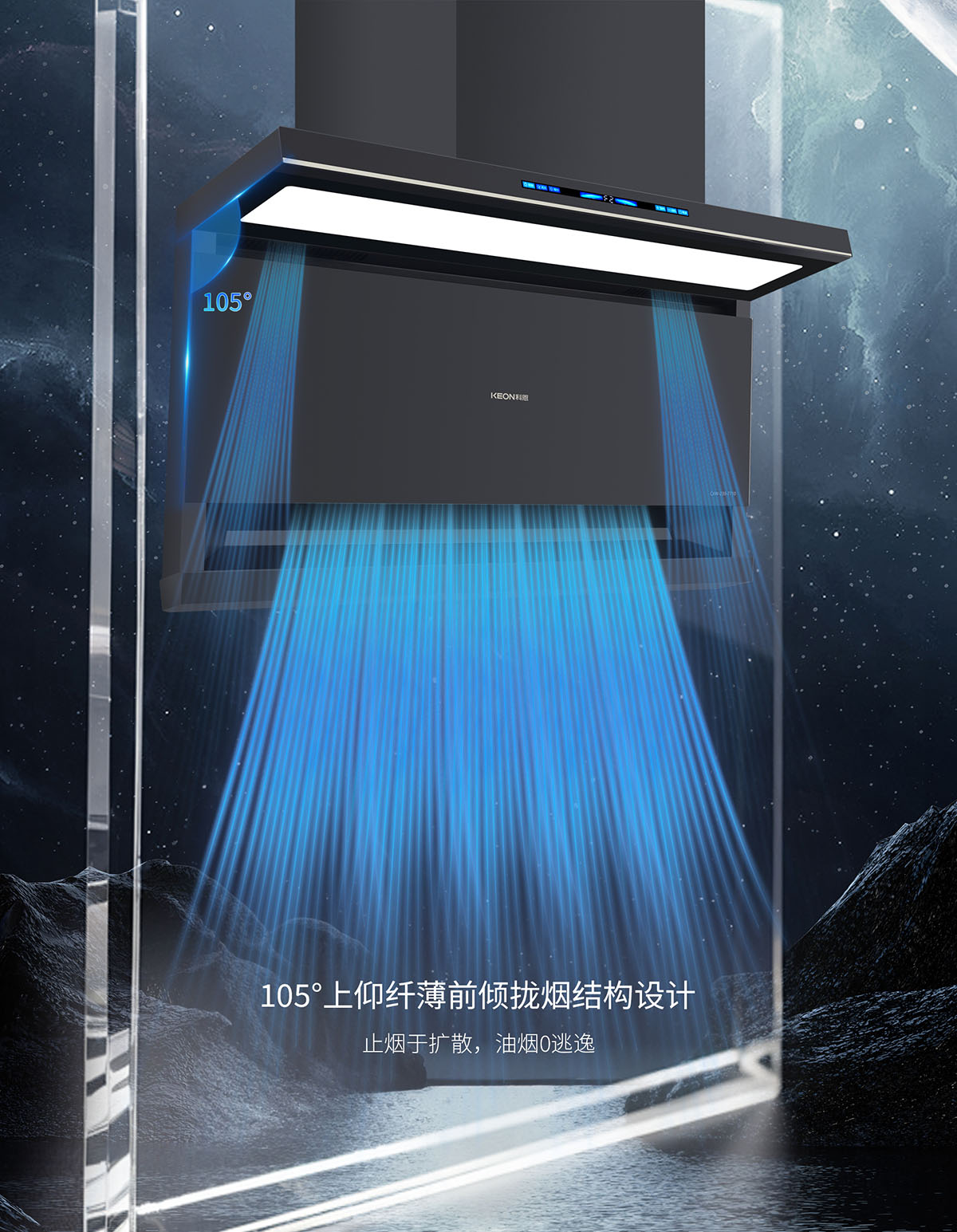 - 下吸上攏,頂側雙吸結構,油煙不逃逸
