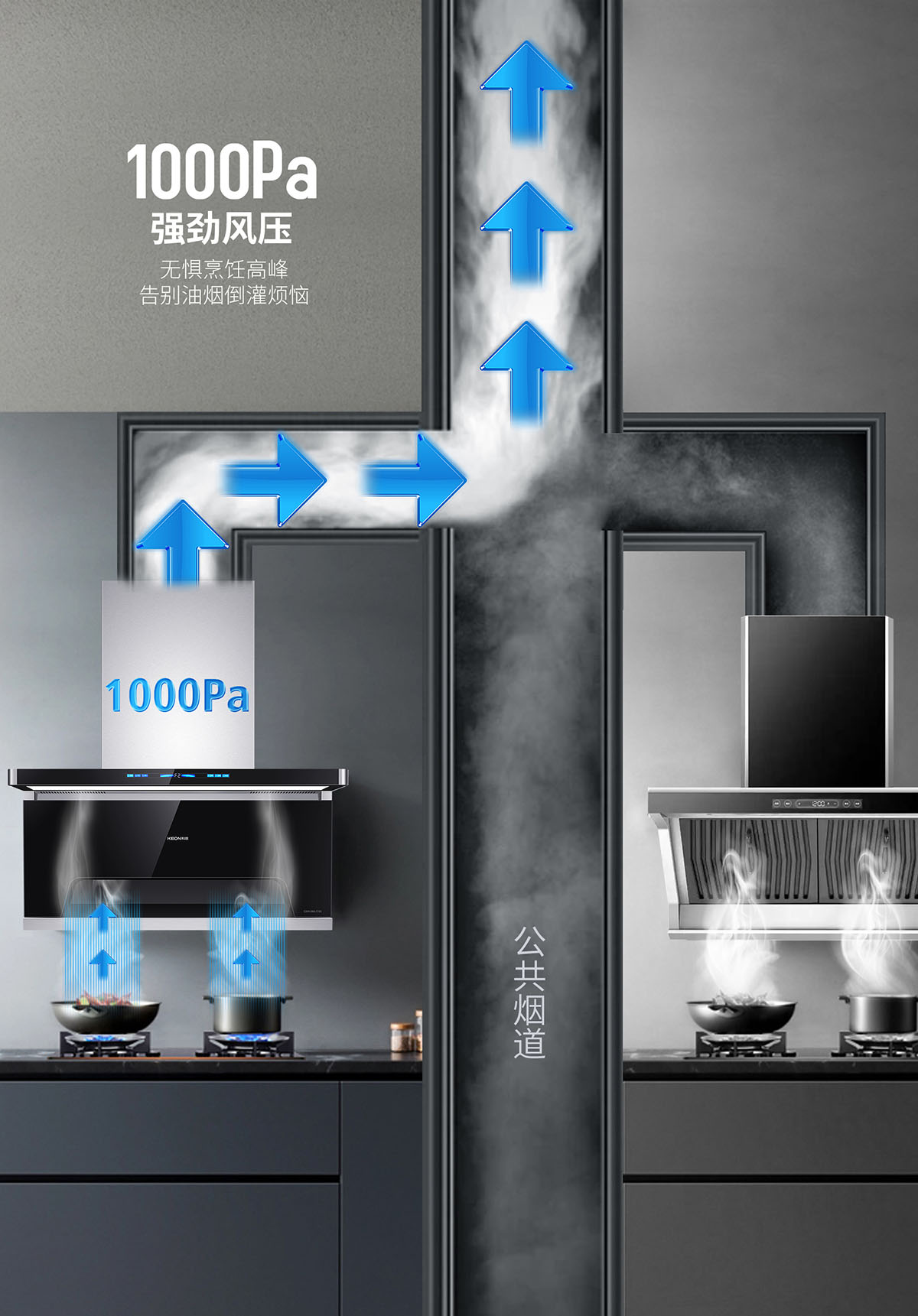 • 1000Pa大風壓,告別油煙倒灌煩惱
