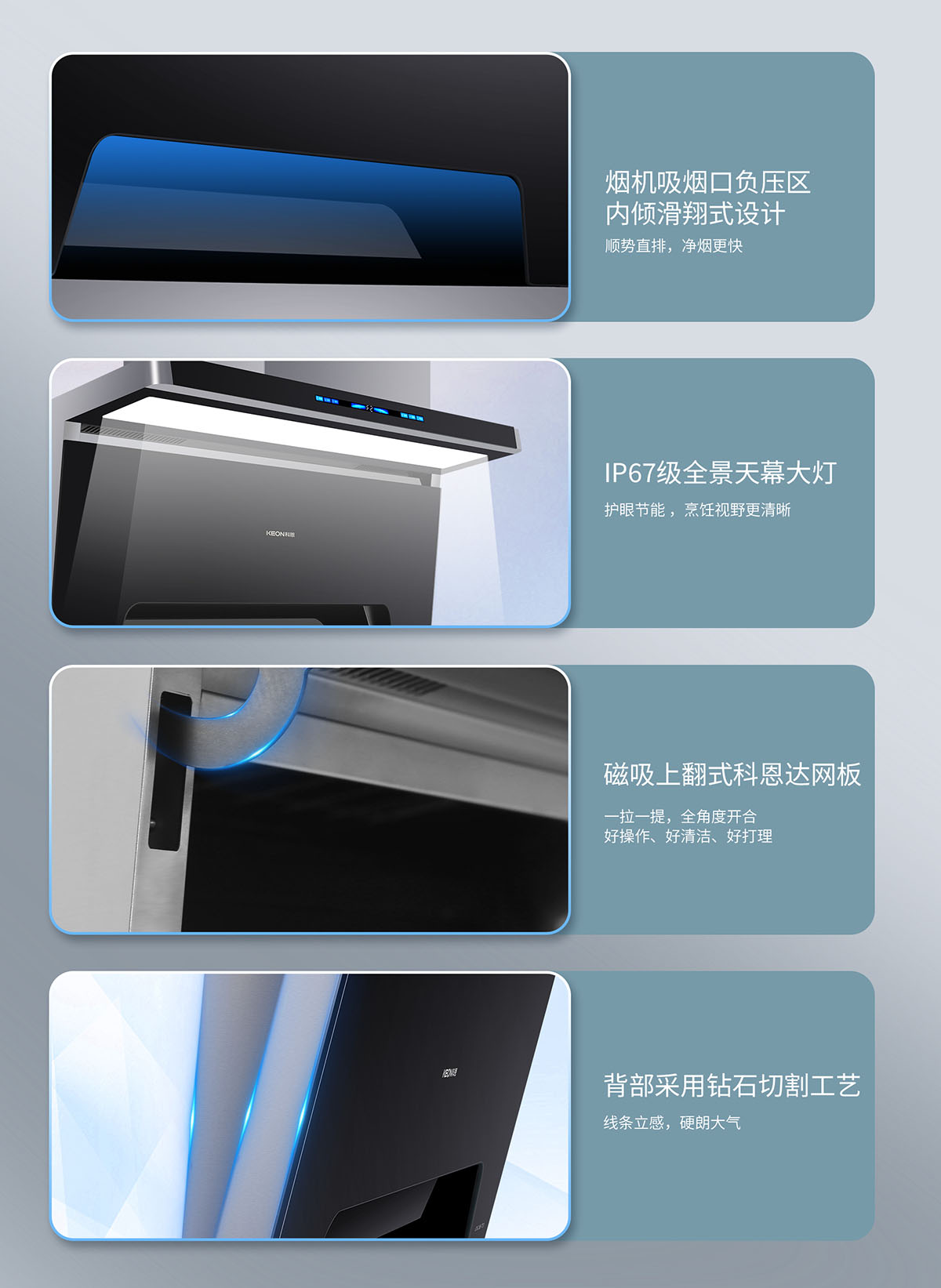 • 磁吸上翻式科恩達導煙板,清潔更便捷