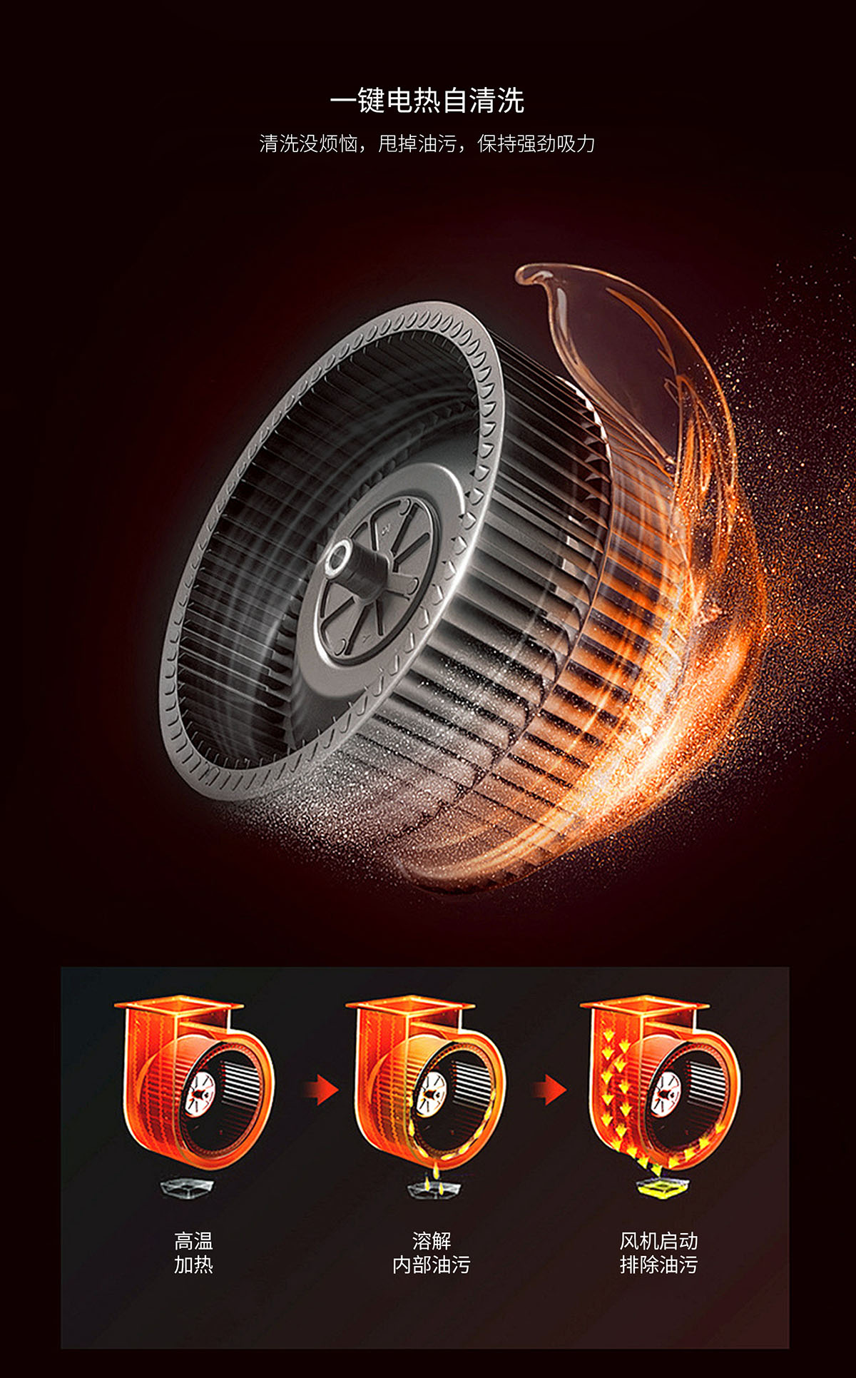 • 電熱自清洗,甩掉油污,保持強勁吸力