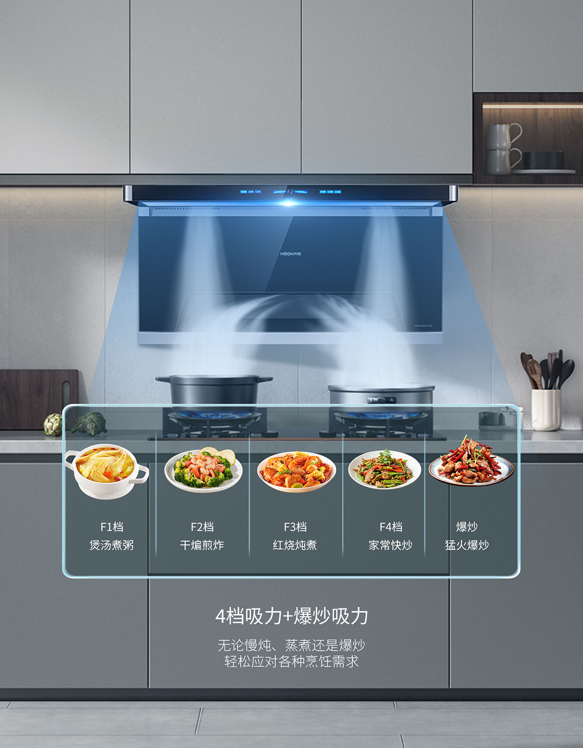 • 4+1檔風力,輕松應對各種烹飪需求