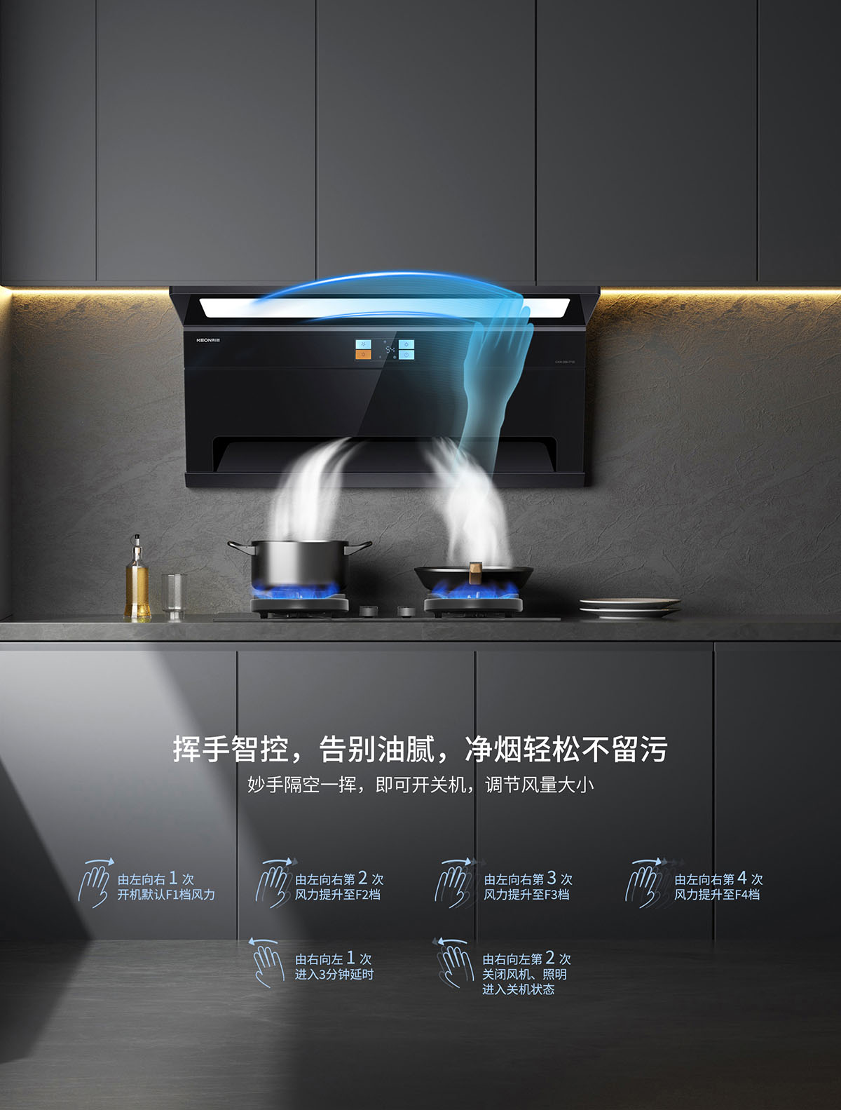 • 體感智控,揮手告別油煙,杜絕操作油膩