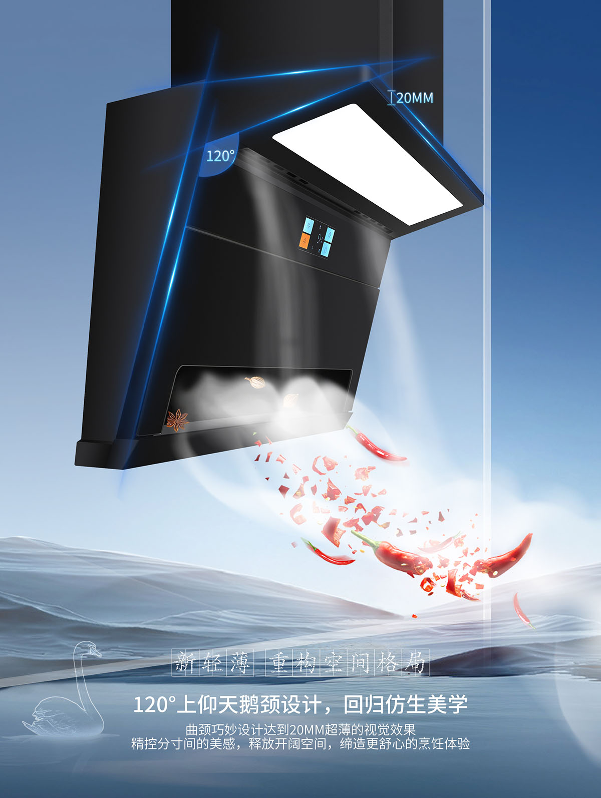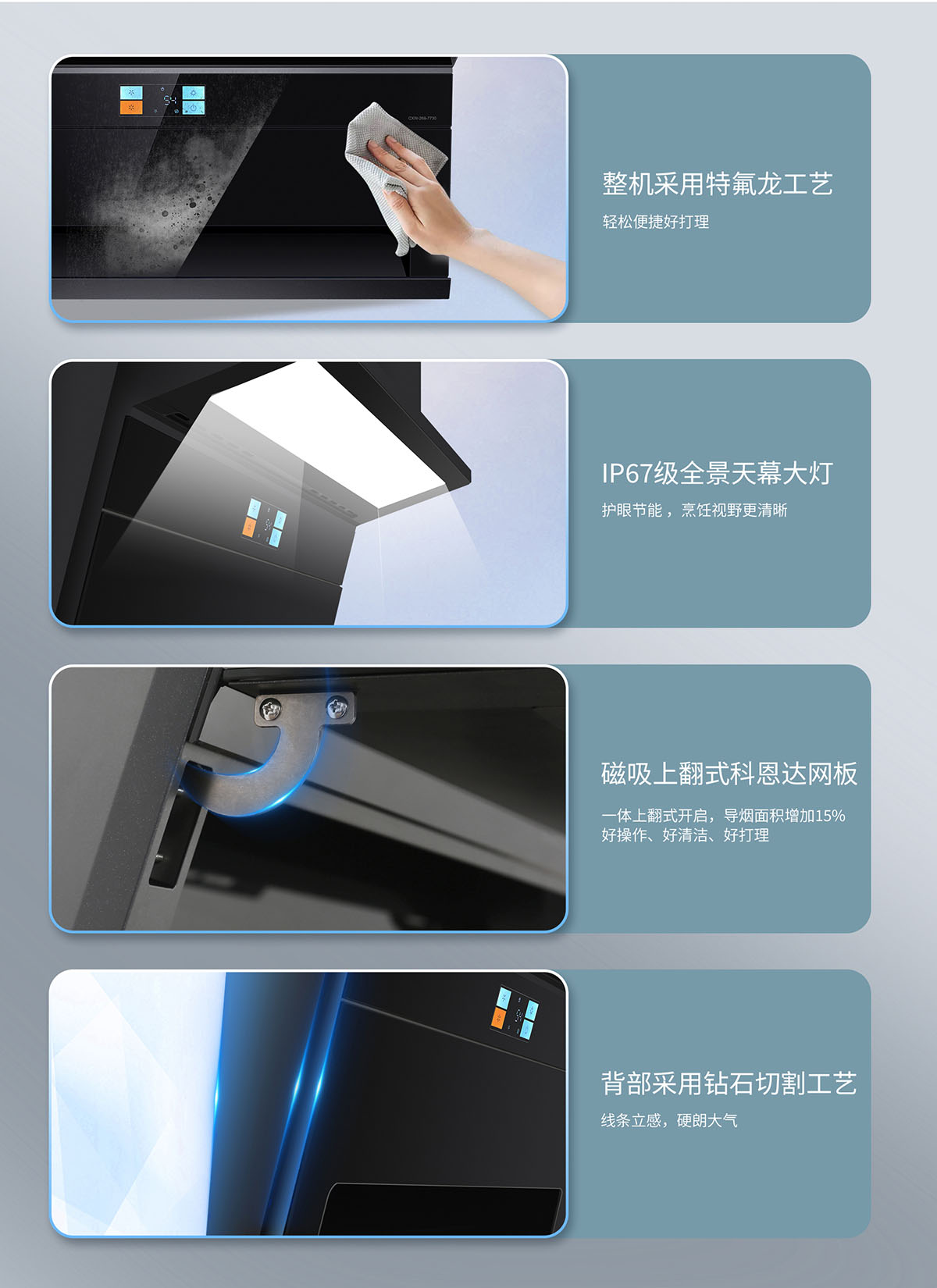 • 磁吸上翻式科恩達導煙板,減震防撞,清潔更便捷