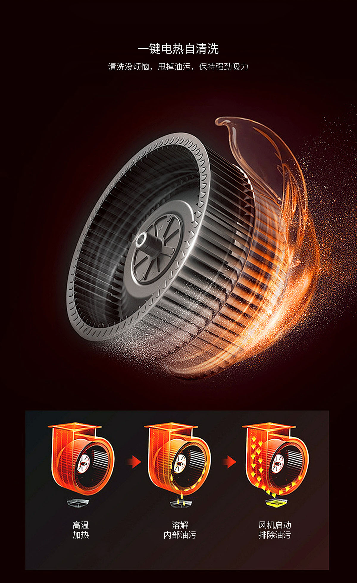• 電熱自清洗,甩掉油污,保持強勁吸力