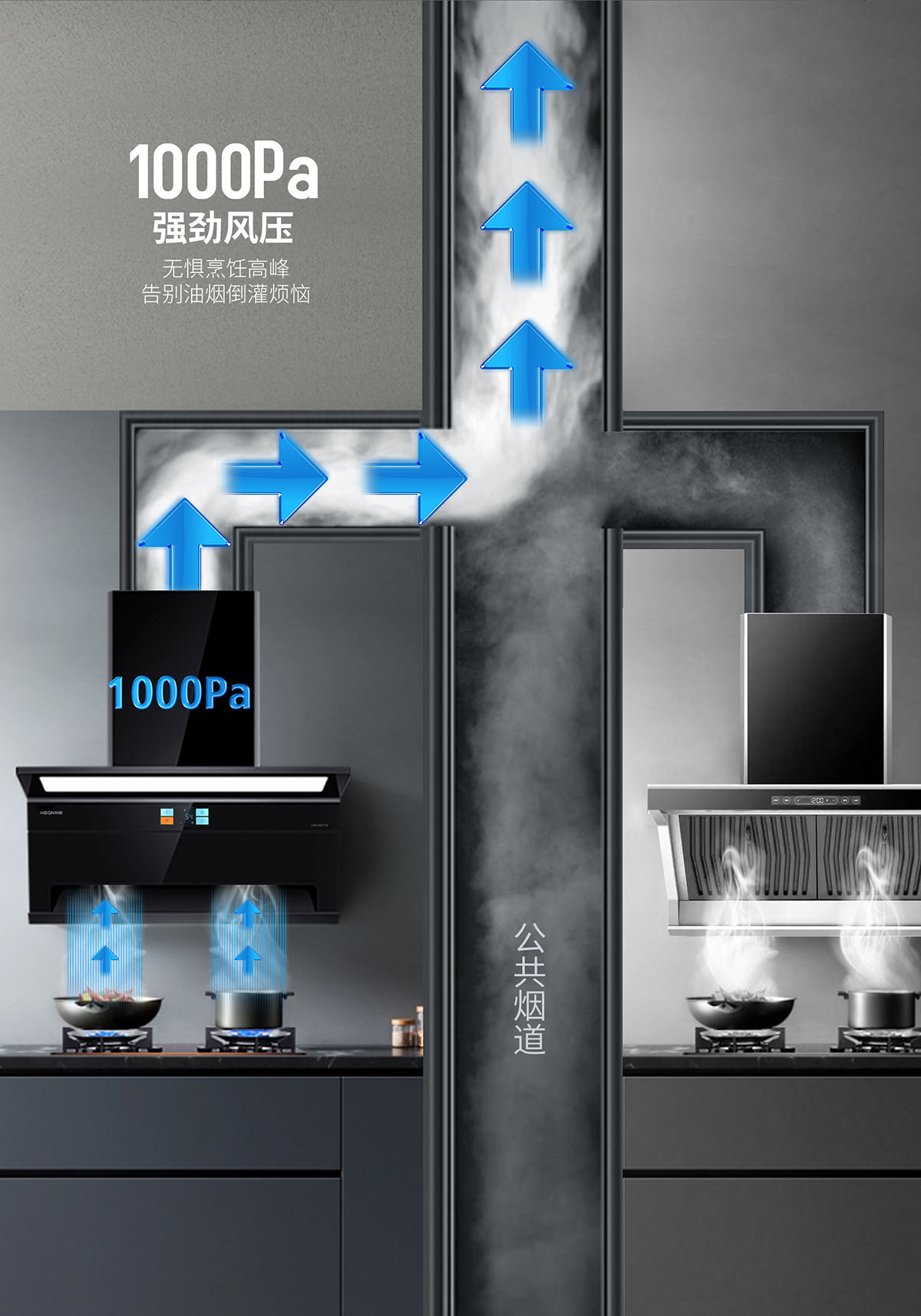 • 1000Pa大風壓,告別油煙倒灌煩惱