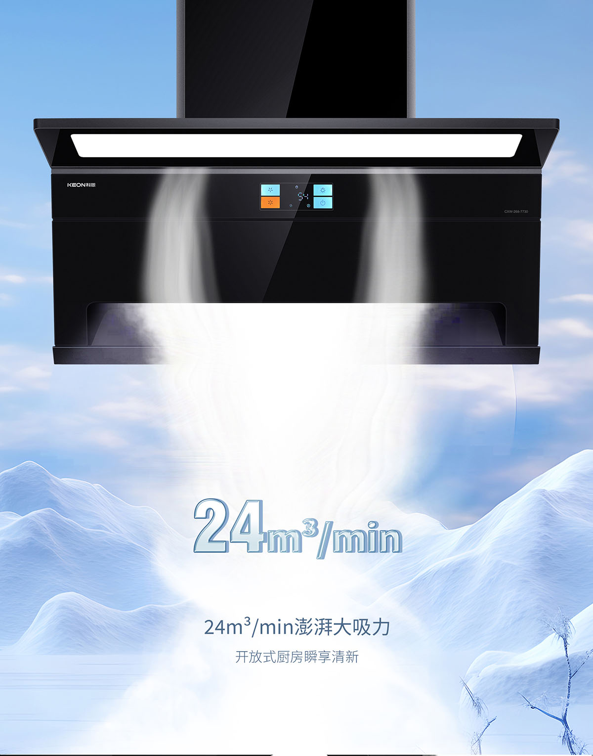 • 24m³/min澎湃大吸力,無懼重煙,凈煙實力派