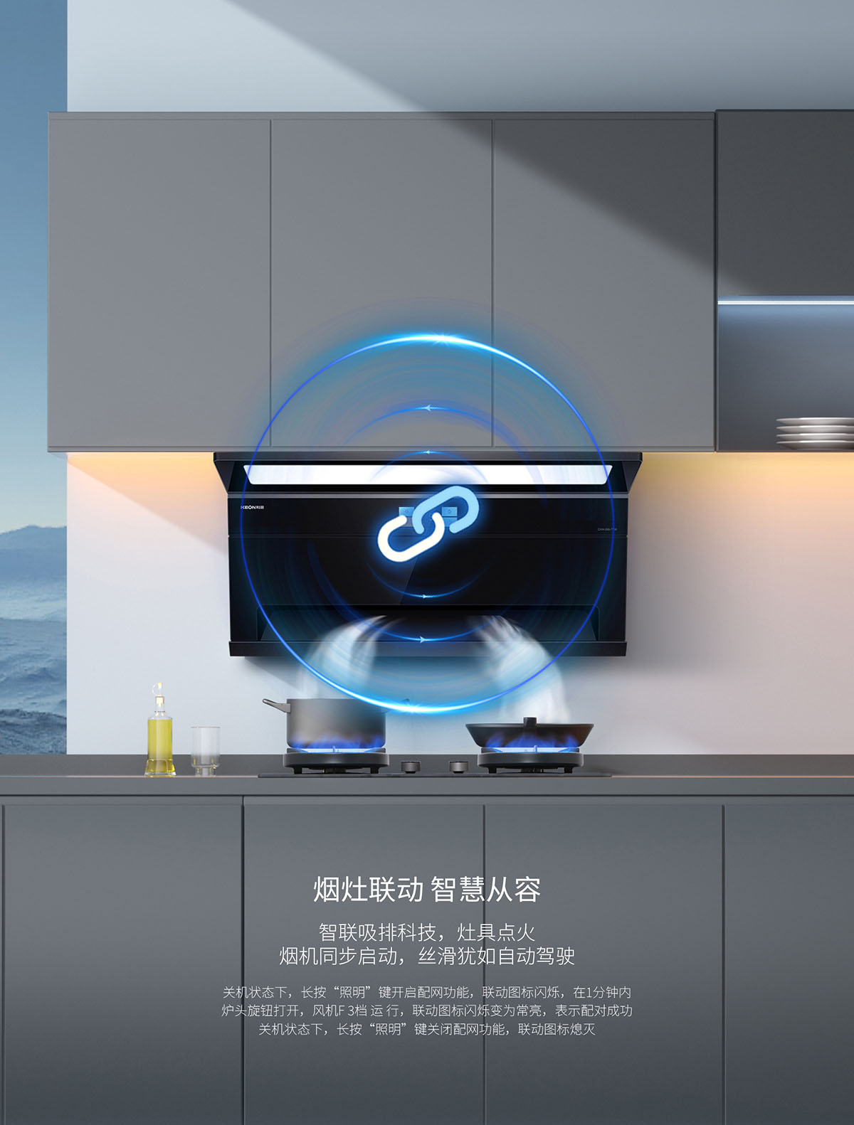 • 風隨火啟,煙灶聯動智慧從容,智聯吸排科技