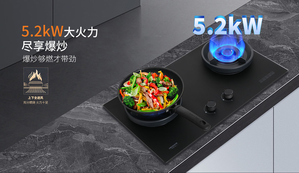 • 360°全維進風,立體補氧,5.2kW大火力盡享爆炒