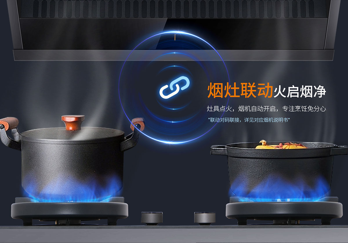 • 煙灶聯動,火啟煙凈,專注烹飪免分心