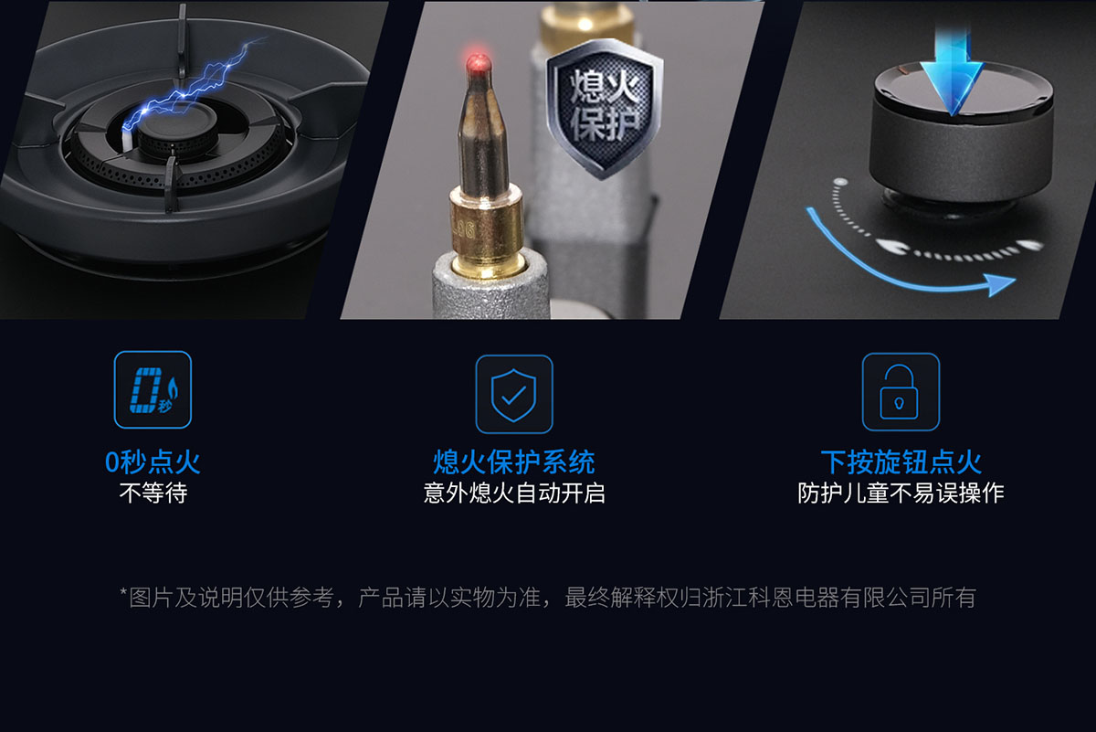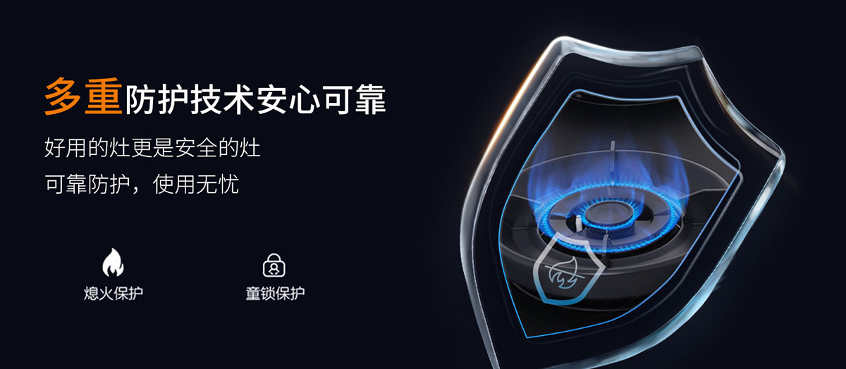 • 意外熄火保護,即刻切斷氣源,保障廚房安全