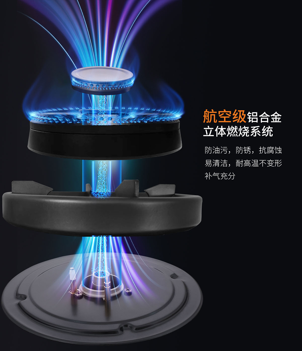• 航空級鋁合金一體燃燒系統,防腐耐高溫、不變形