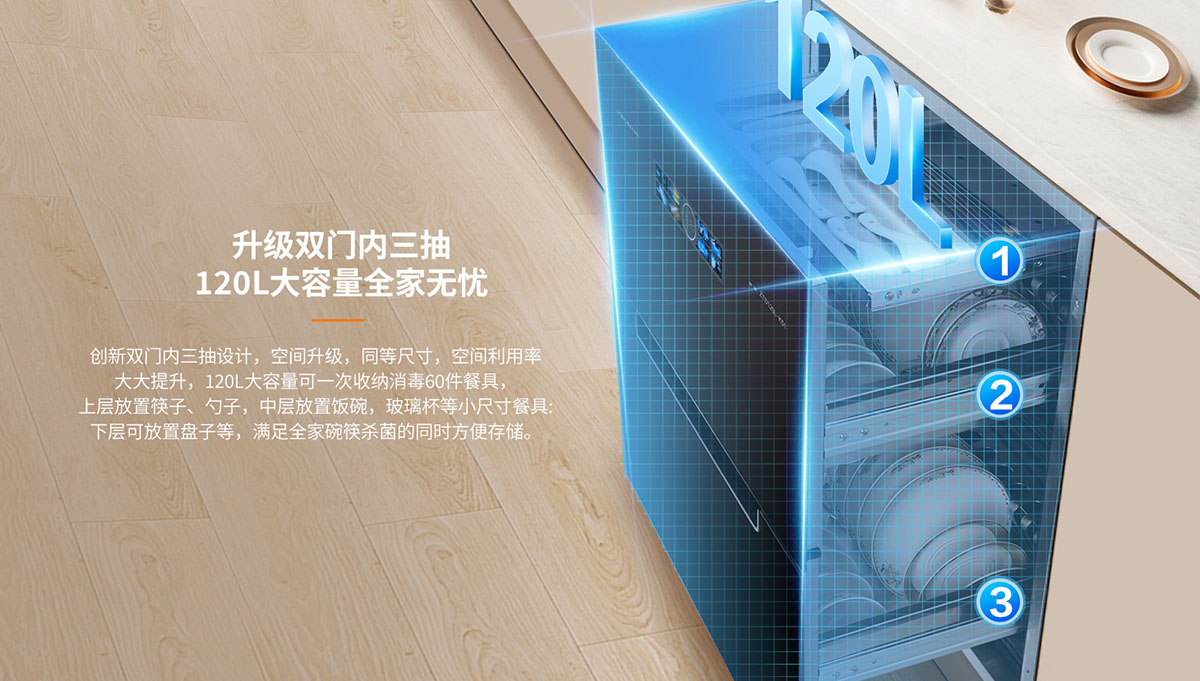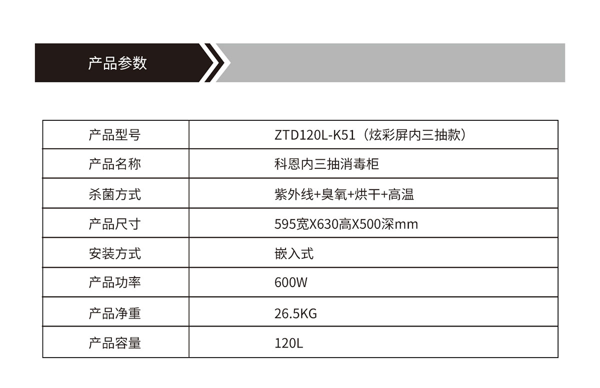 產品型號:ZTD120L-K51(炫彩屏內三抽款)